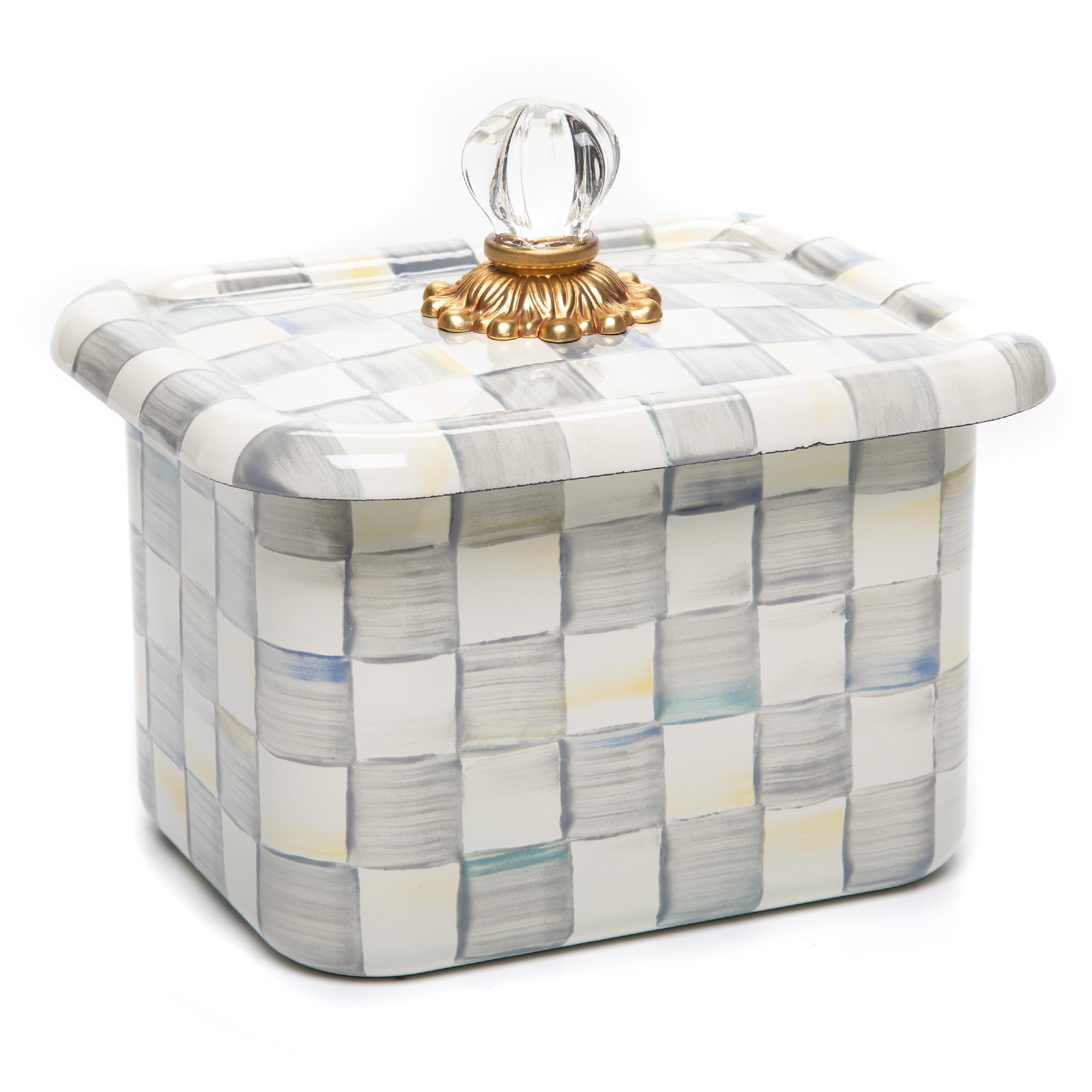 MACKENZIE-CHILDS Enamel Recipe Box, Index Card Box with Lid, Includes 40 Recipe Cards, Gray-and-White Sterling Check|Home & Garden
