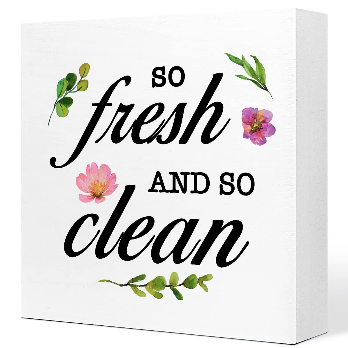 Inspirational Wood Block Sign Desk Decorations for Home Bathroom Desk Shelf Table Decor (So Fresh)|Home & Garden