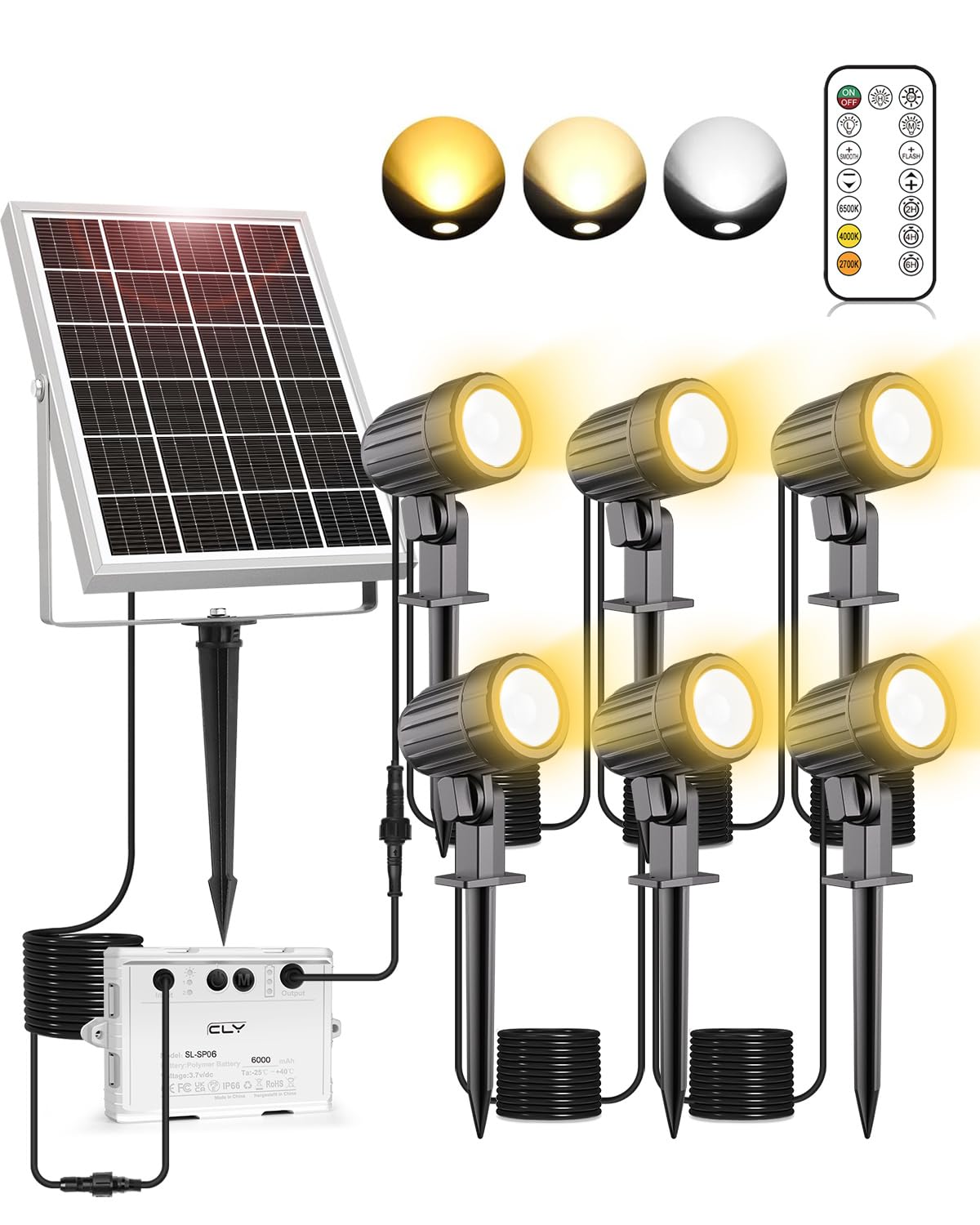 CLY 6 in 1 Solar Spotlights Landscape Outdoor Garden, Solar Spotlights IP66 Waterproof Landscape Lighting with Remote 18M Cable for Garden, Lawn,|Home & Garden