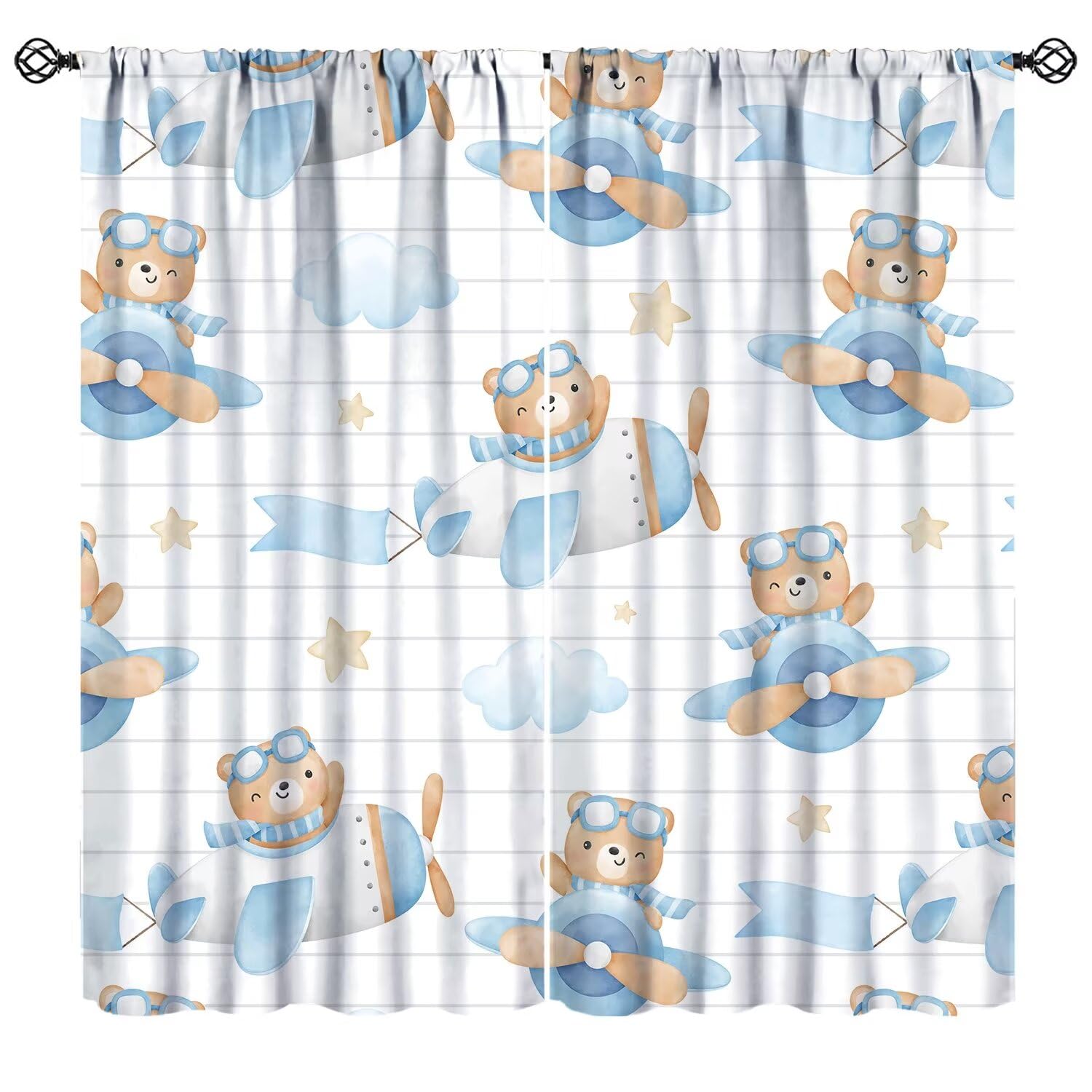 Mchenxin Blue Bear Curtains for Kids Boys, Cartoon Cute Adventure Bear Airplane Clound Stars Print Window Treatments for Baby Bedroom Living Room,|Home & Garden