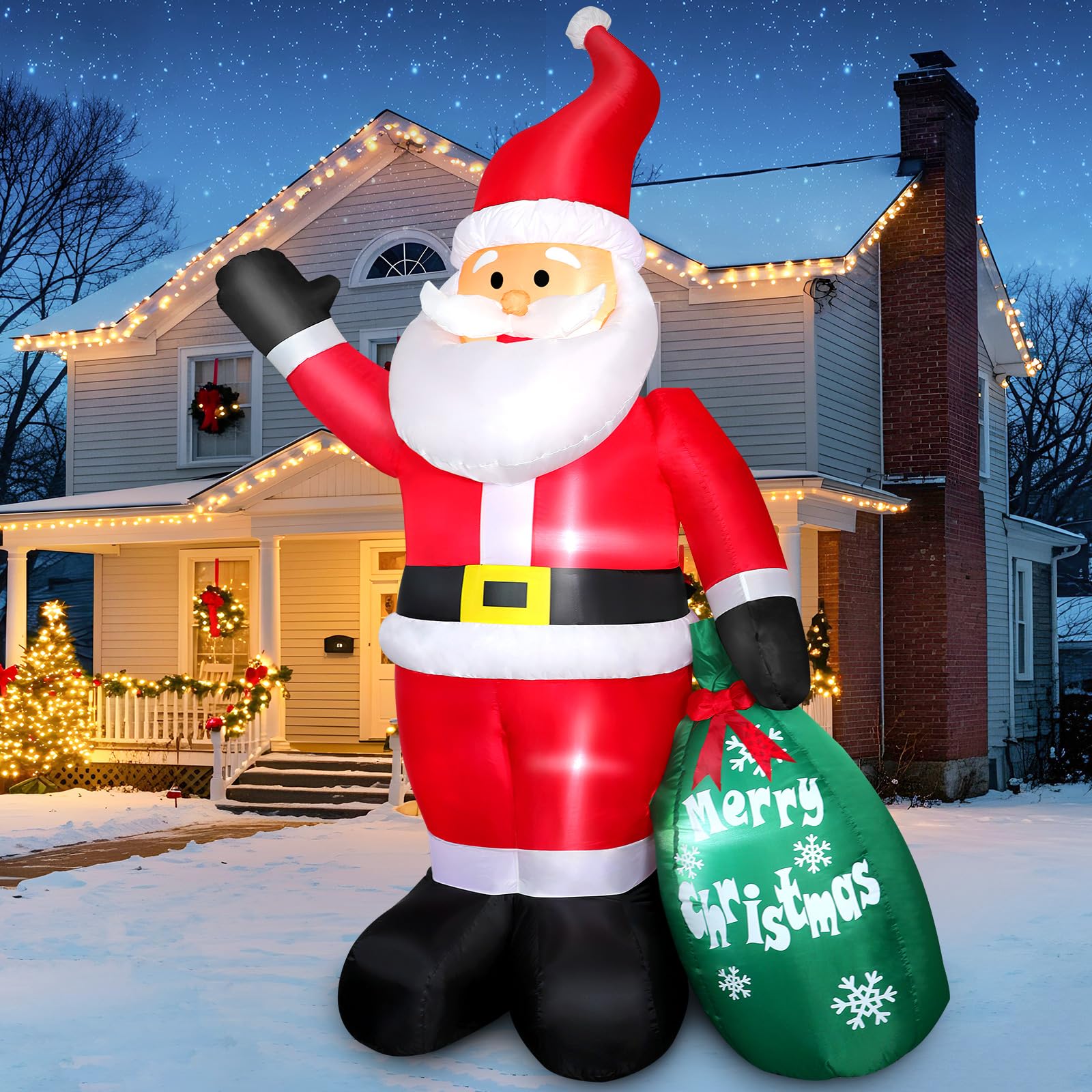 7 FT Christmas Inflatable Santa Claus with Gift Bag, Blow up Giant Santa Claus Indoor Decoration, Built-in LED Lights for Lawn Patio Garden Home|Home & Garden