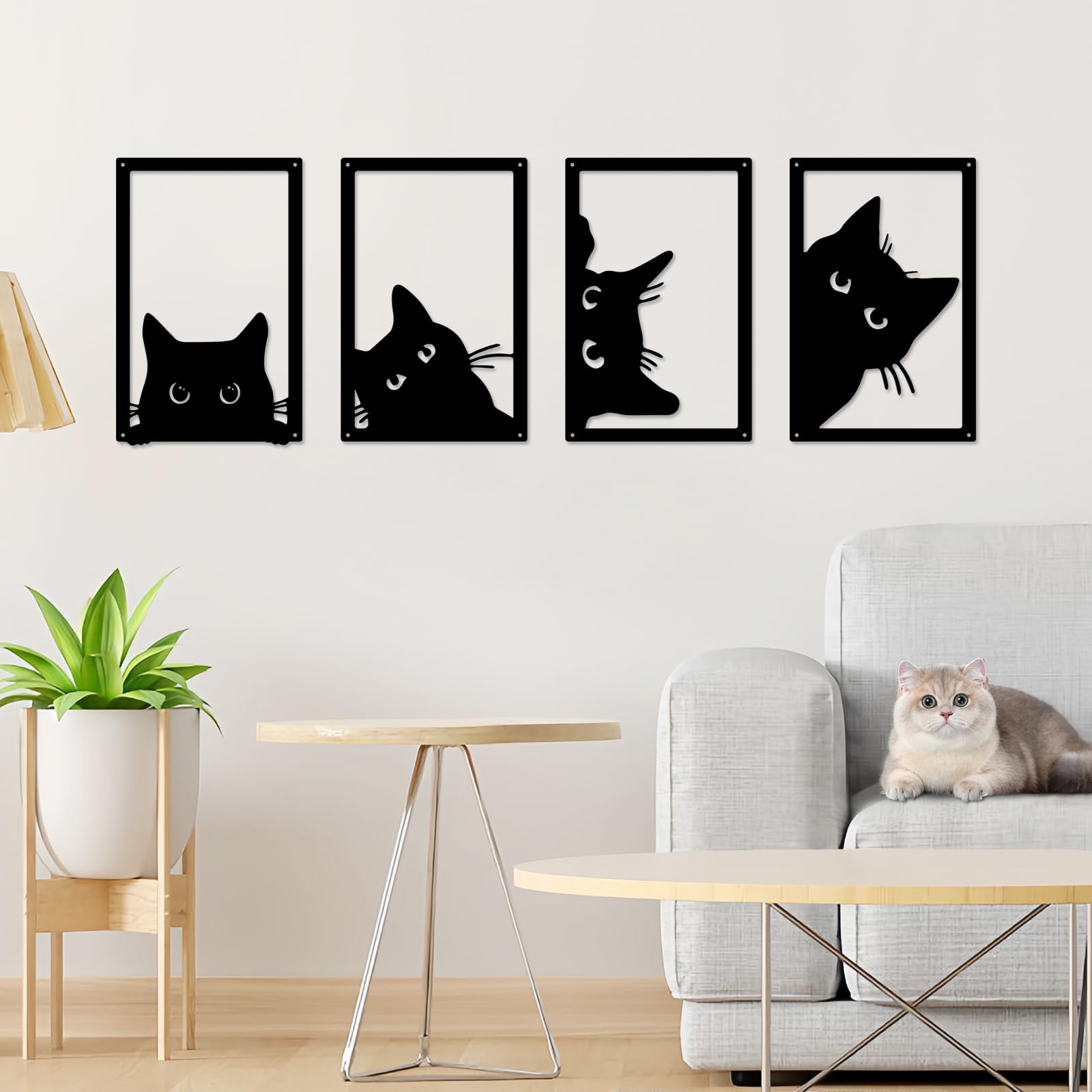 ENKUY 4 Pieces Metal Black Cat Wall Art Decor,Black Cat Wall Hanging Decor Wall Art for Living Room Bedroom Kitchen Office Garden Hotel,Decor Cat Wall|Home & Garden