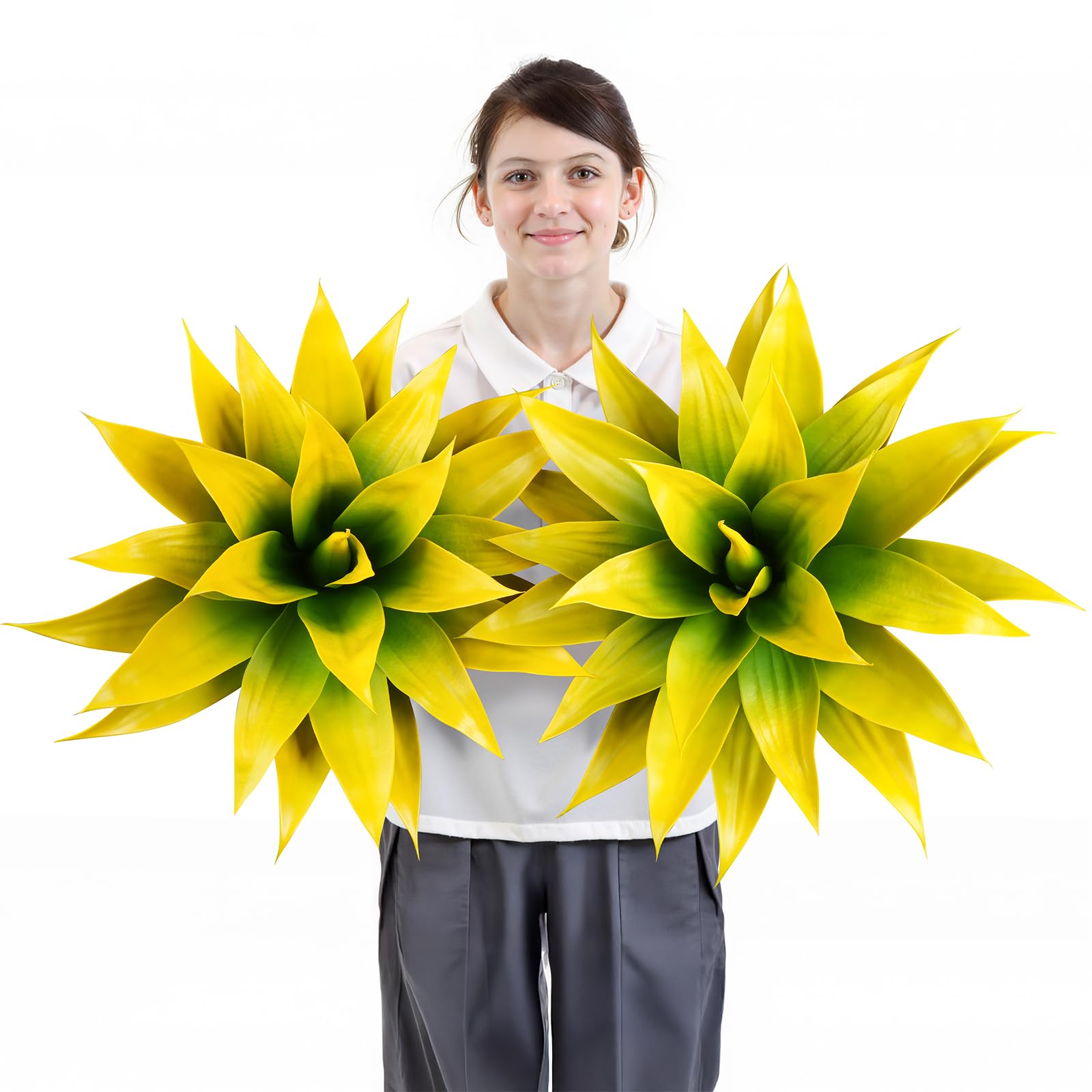Velener Artificial Agave Plant Set, 28 Inch, Faux Aesthetic Plants for Home Decor, Realistic UV Resistant Fake Yellow Agave Plants Without Pot, Set of|Home & Garden