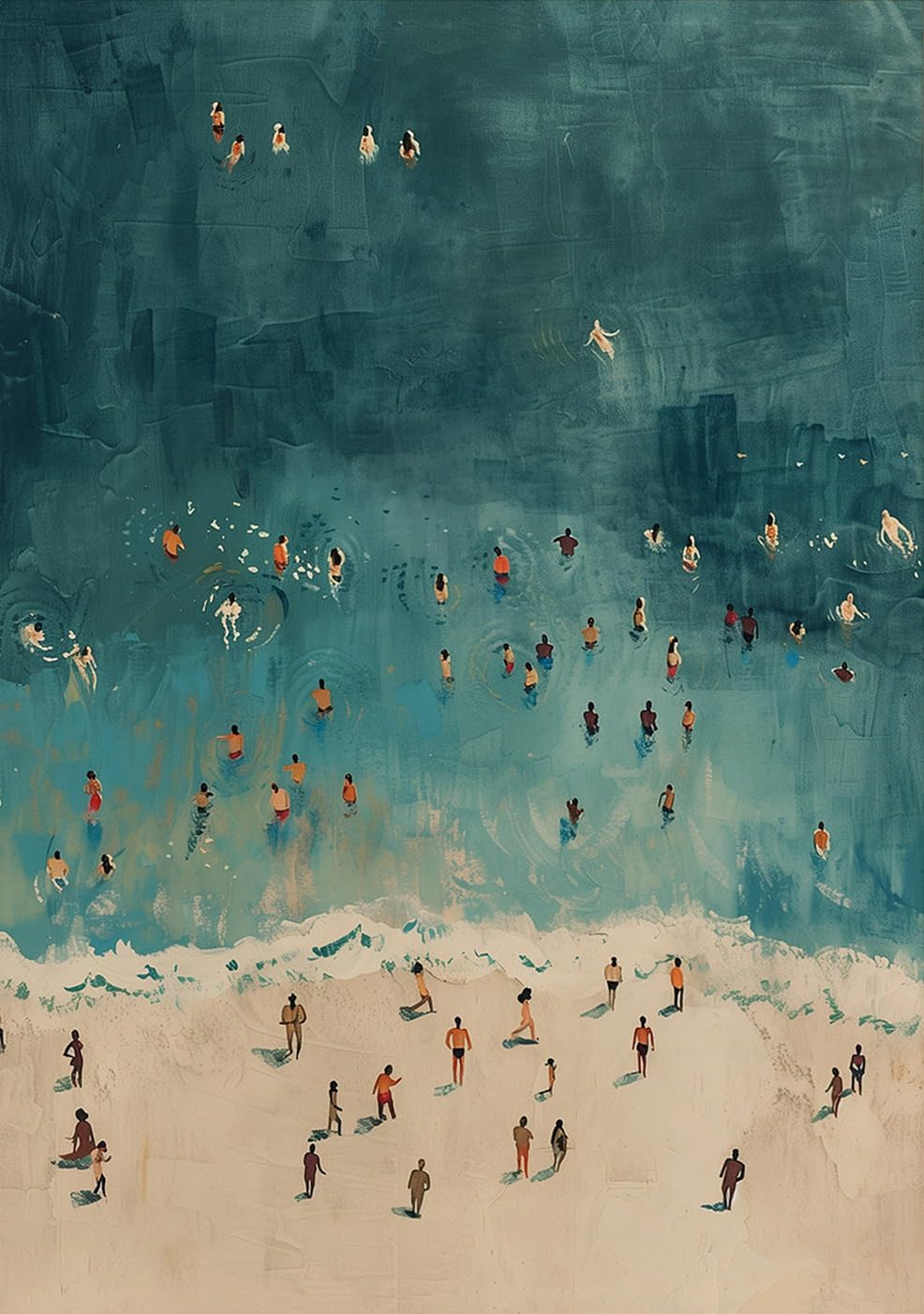SRuntoo Summer Beachy Wall Art Tiny People Swimming In Ocean Poster For Surfing Enthusiasts Room Decor-Ocean Surf Canvas Print Picture For Beach House|Home & Garden