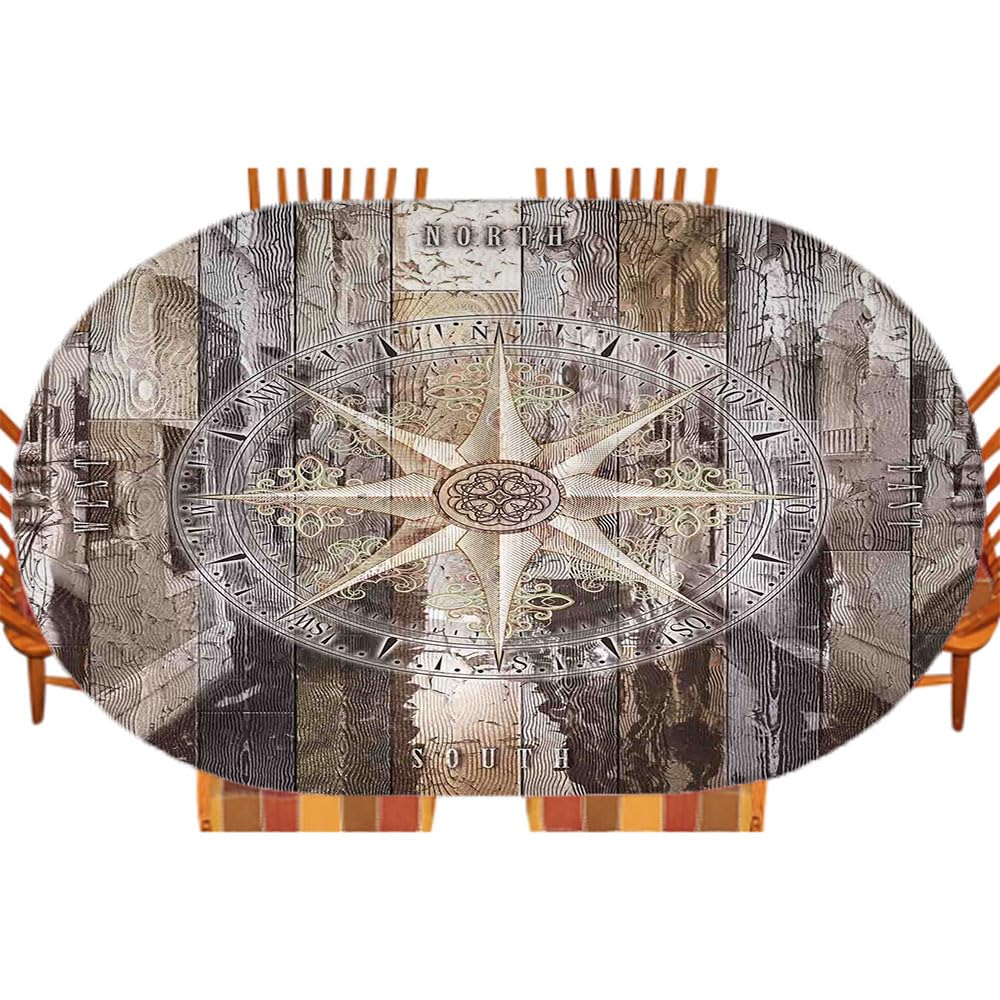 Marine Life Fitted Table Cover, Navy Sea Life Yacht Theme Colored Wood Backdrop Rudder Like Compass Marine Image, Indoor/Outdoor Waterproof Tablecloth|Home & Garden