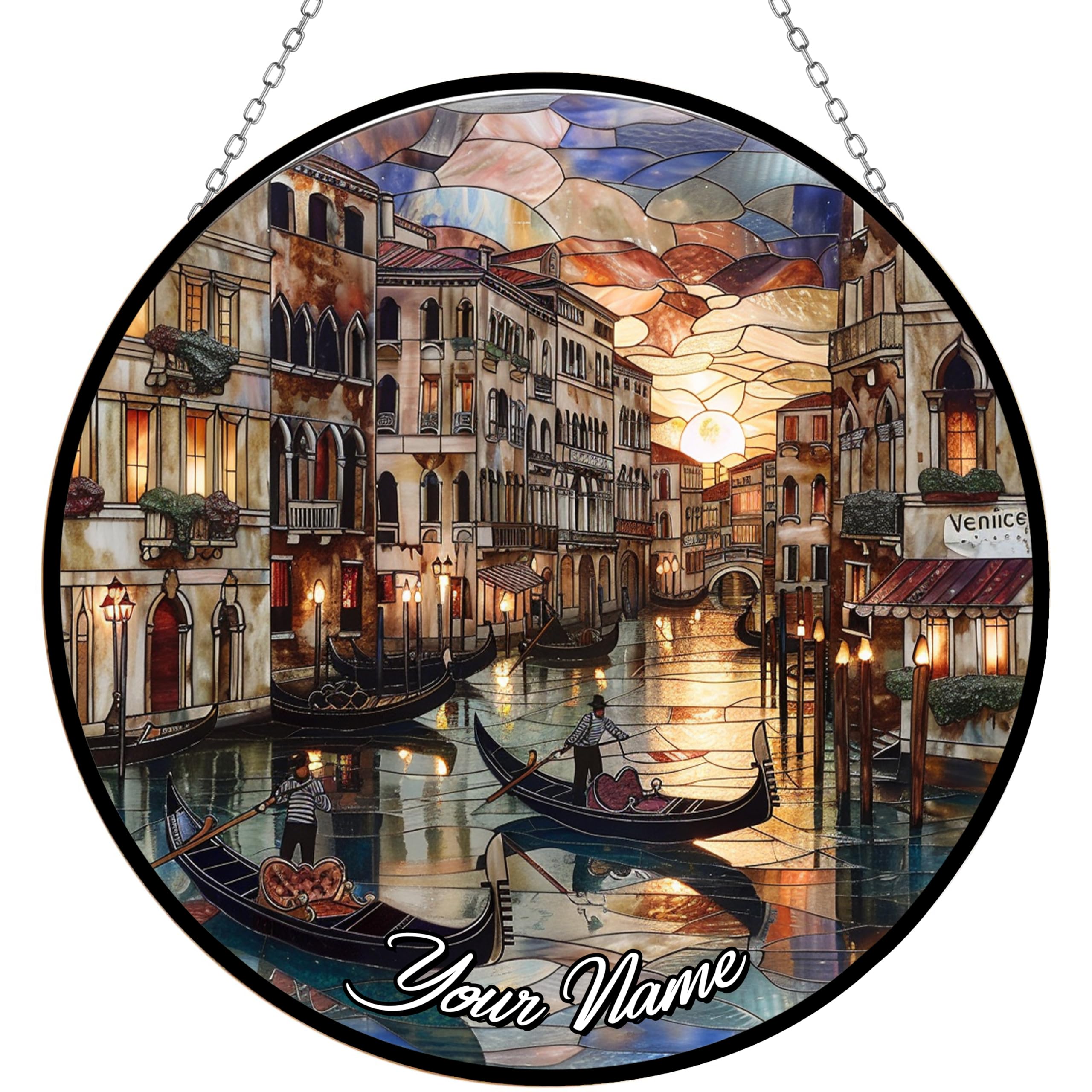 HYPESTYLE Personalized Venice Italy Stained Glass Window Hanging Sun Catcher Halloween Haning Ornament Decoration Christmas Birthday Gifts for Lover|Home & Garden
