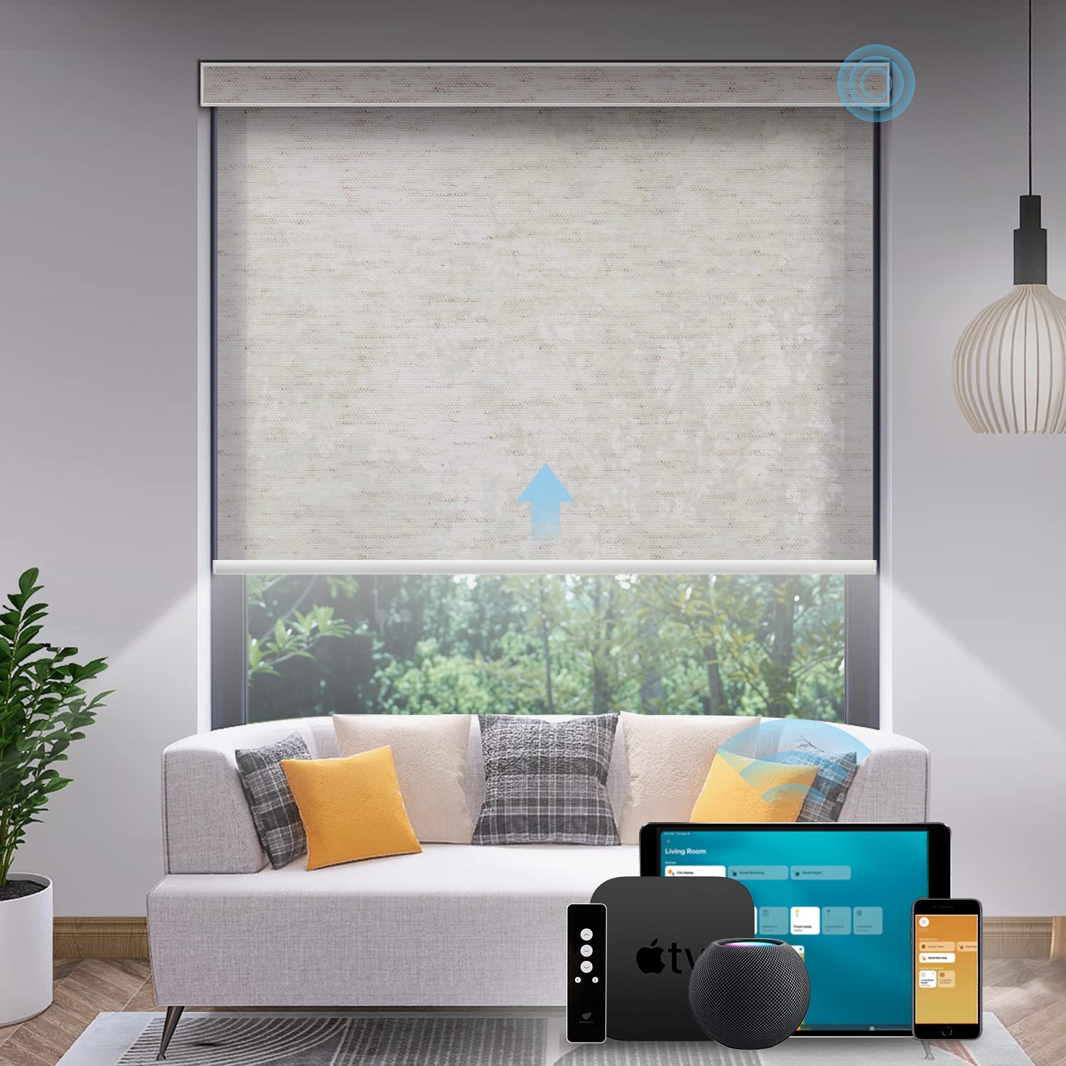 SmartWings Light Filtering Motorized Roller Shades Work with HomeKit, Z-Wave 70% Blackout Shades, Wireless Cordless Window Shades with Remote Control,|Home & Garden