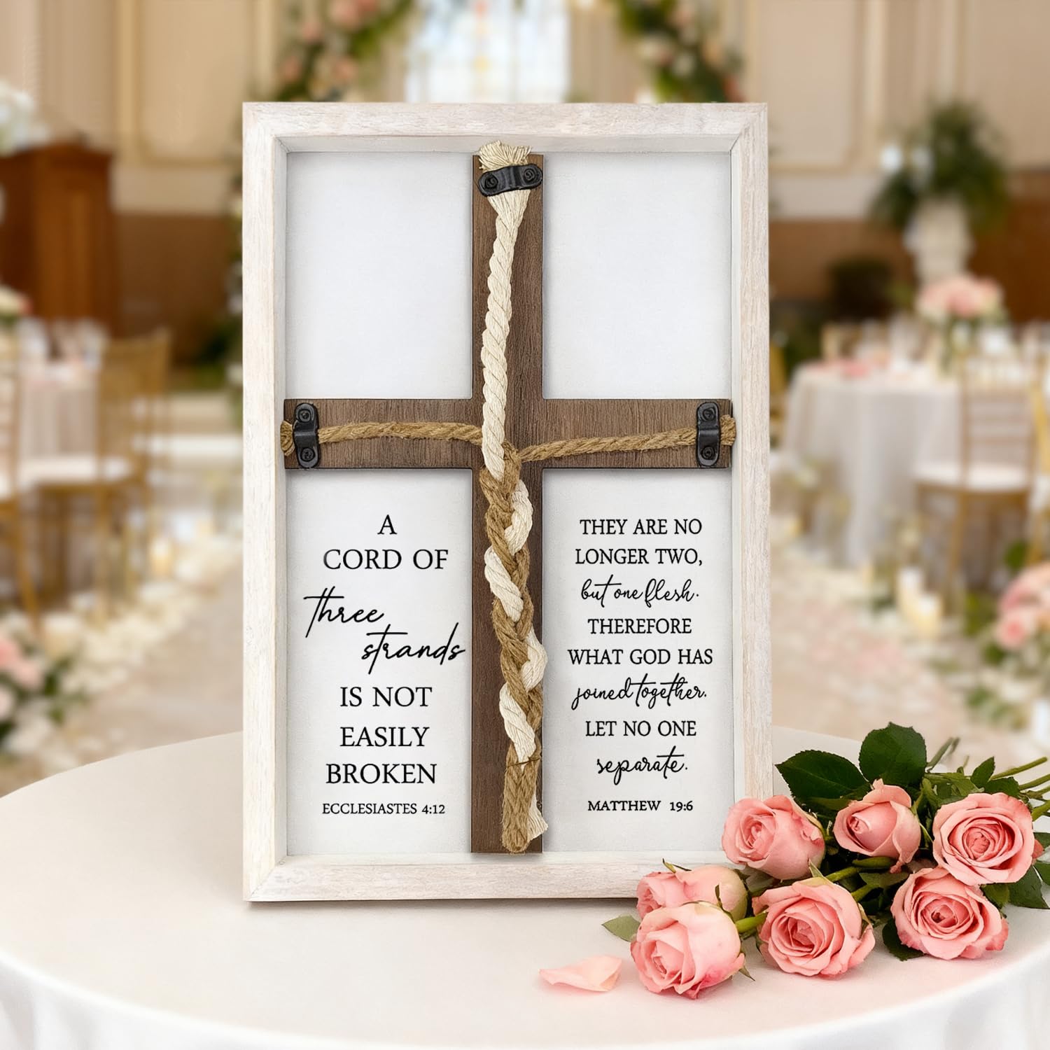 A Cord of Three Strands Wedding Sign Wall Decor 15x10 Inch Christian Marriage Art Wood Framed Braid for Wedding Ceremony Ideas Religious Couple|Home & Garden