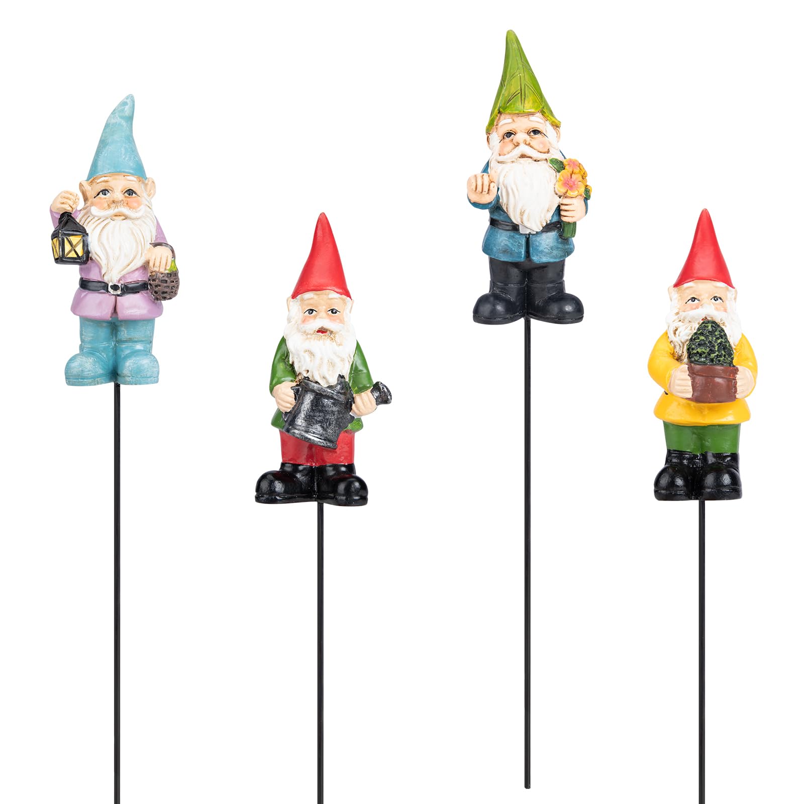 Ovewios Garden Gnome Statue, Resin Miniature Gnome Set of 4PCS, Figurine with Garden Stakes for Lawn Patio Yard Outdoor Home Decor|Home & Garden