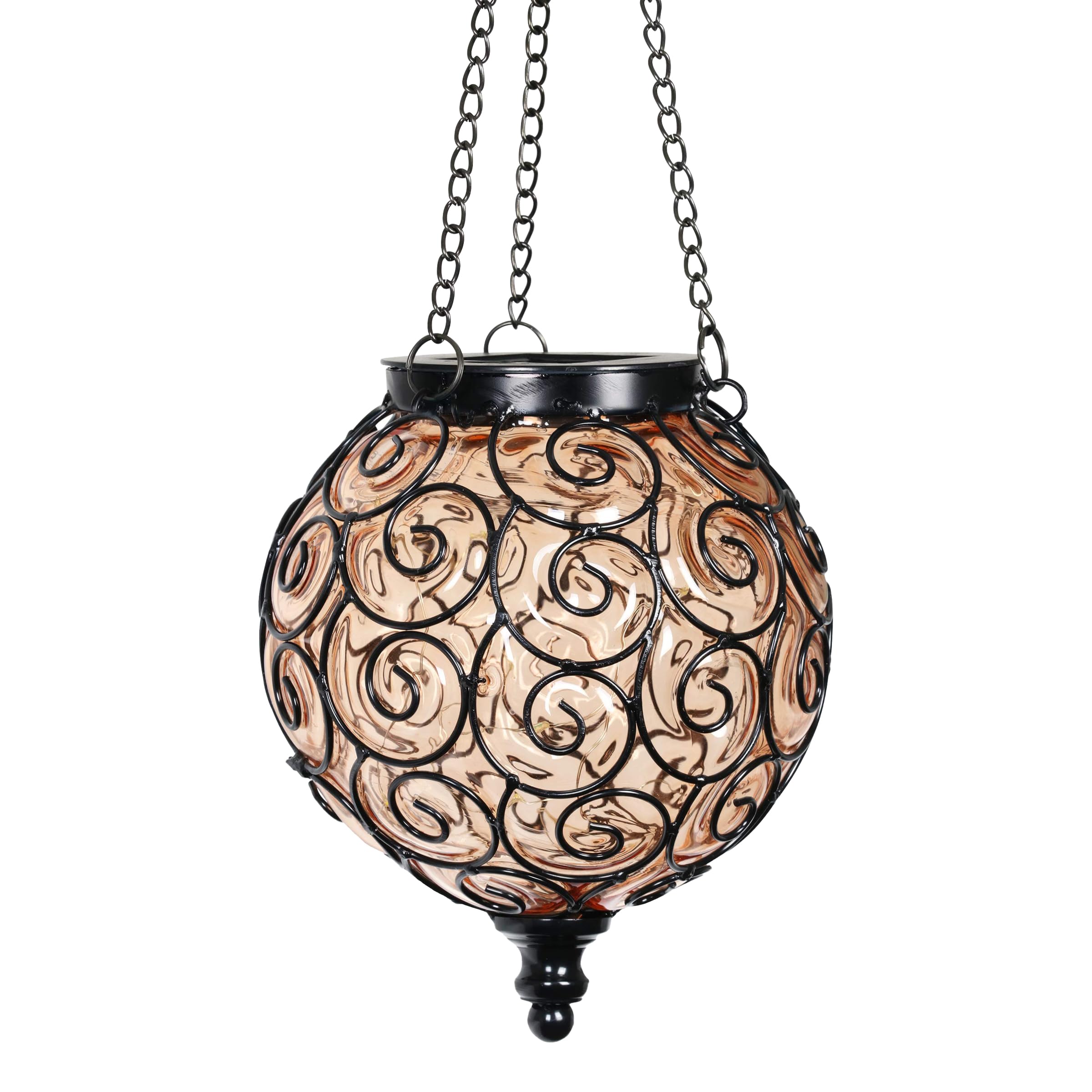 Naboher Solar Hanging Lantern Outdoor Garden Lights, Round Glass and Metal Hanging Lantern, 15 Firefly LED Lights, 7 x 20 Inch, Amber|Home & Garden