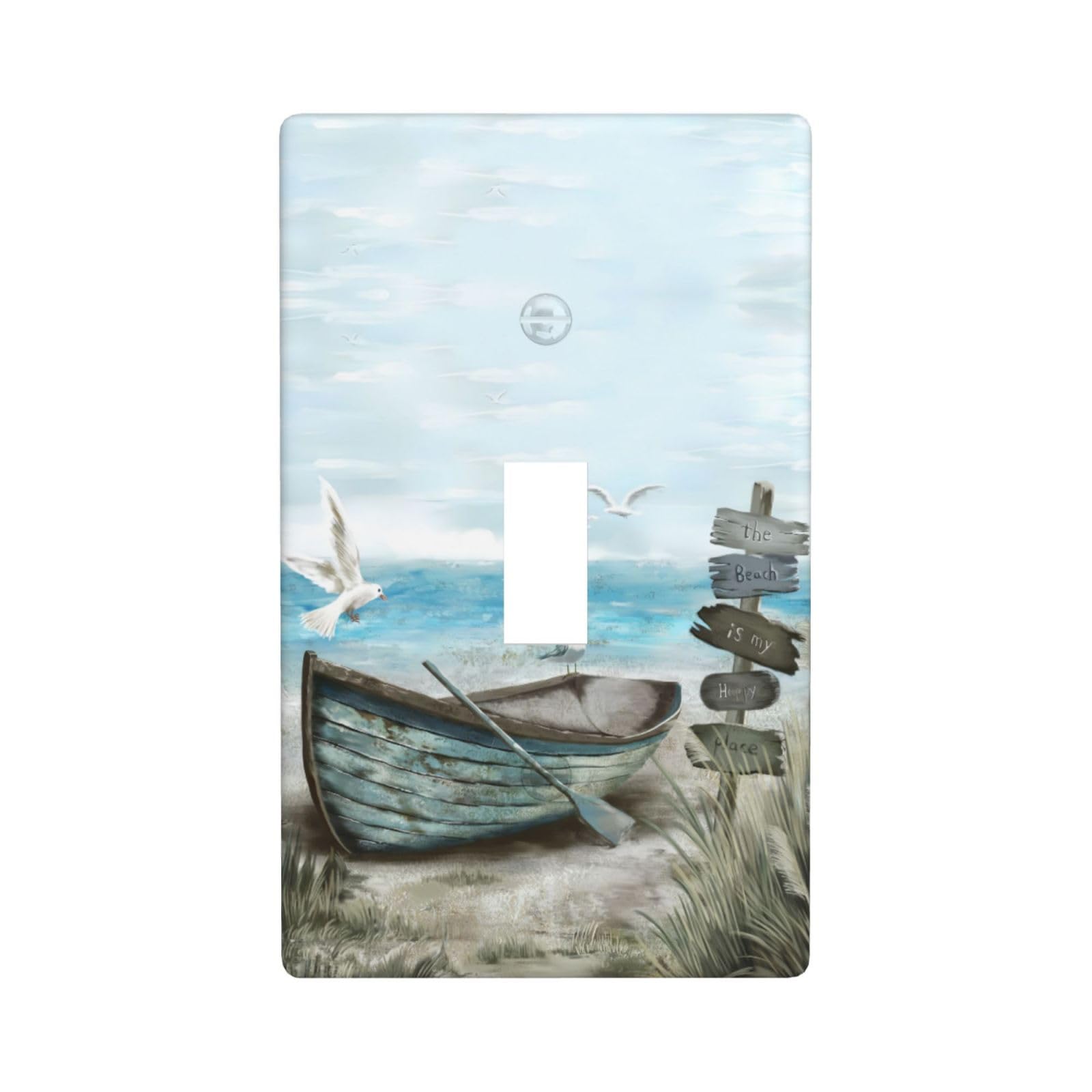 wyehjut Nautical Boat Beach Ocean Seagull Seascape 1 Gang Single Toggle Light Switch Cover Decorative Wall Plate Outlet Faceplate Socket for Bathroom|Home & Garden