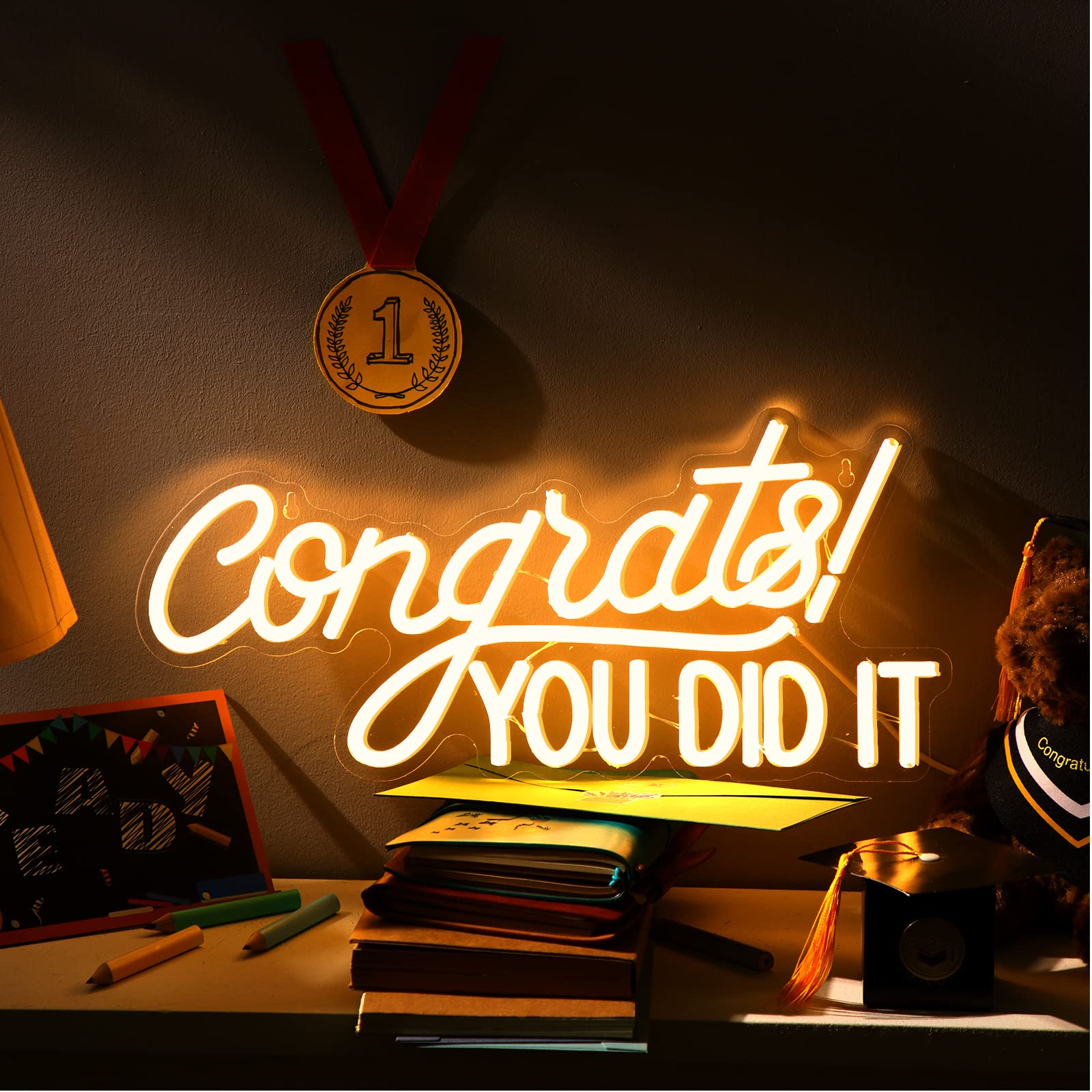 Congrats Grad Neon Sign LED Light Sign Congrats Light up Background Wall Art Decoration for Graduation Party Home Hotel Bar College Graduation Gifts (|Home & Garden