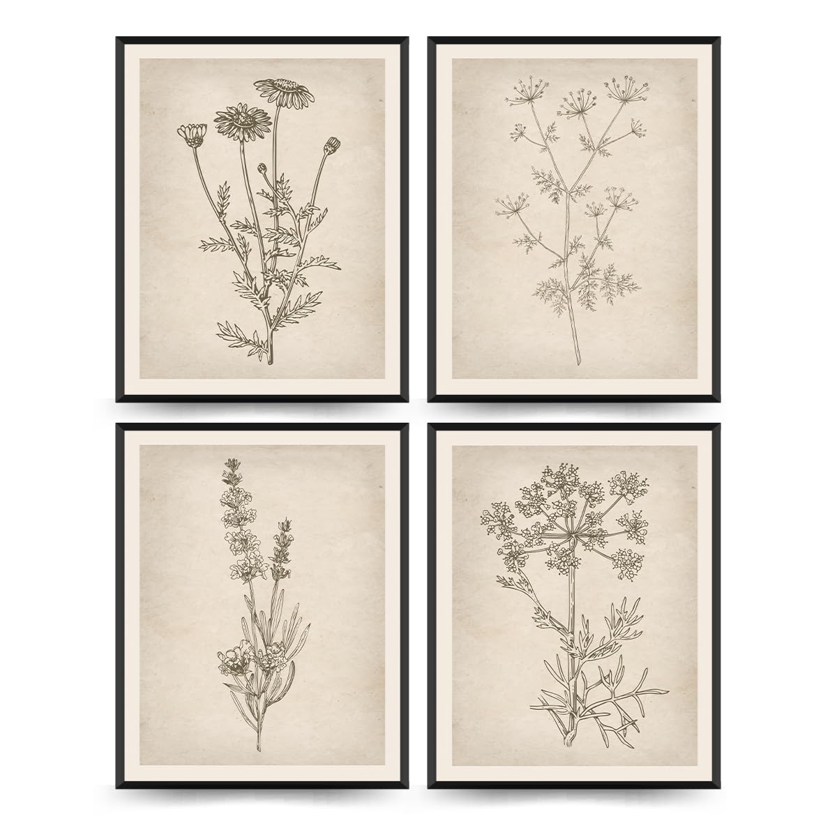 PLKMN Vintage Floral Wall Art Prints Set of 4, Neutral Boho Wildflower Pictures, Minimalist Floral Decor for Bathroom, Kitchen, Farmhouse, 8x10 Inch,|Home & Garden