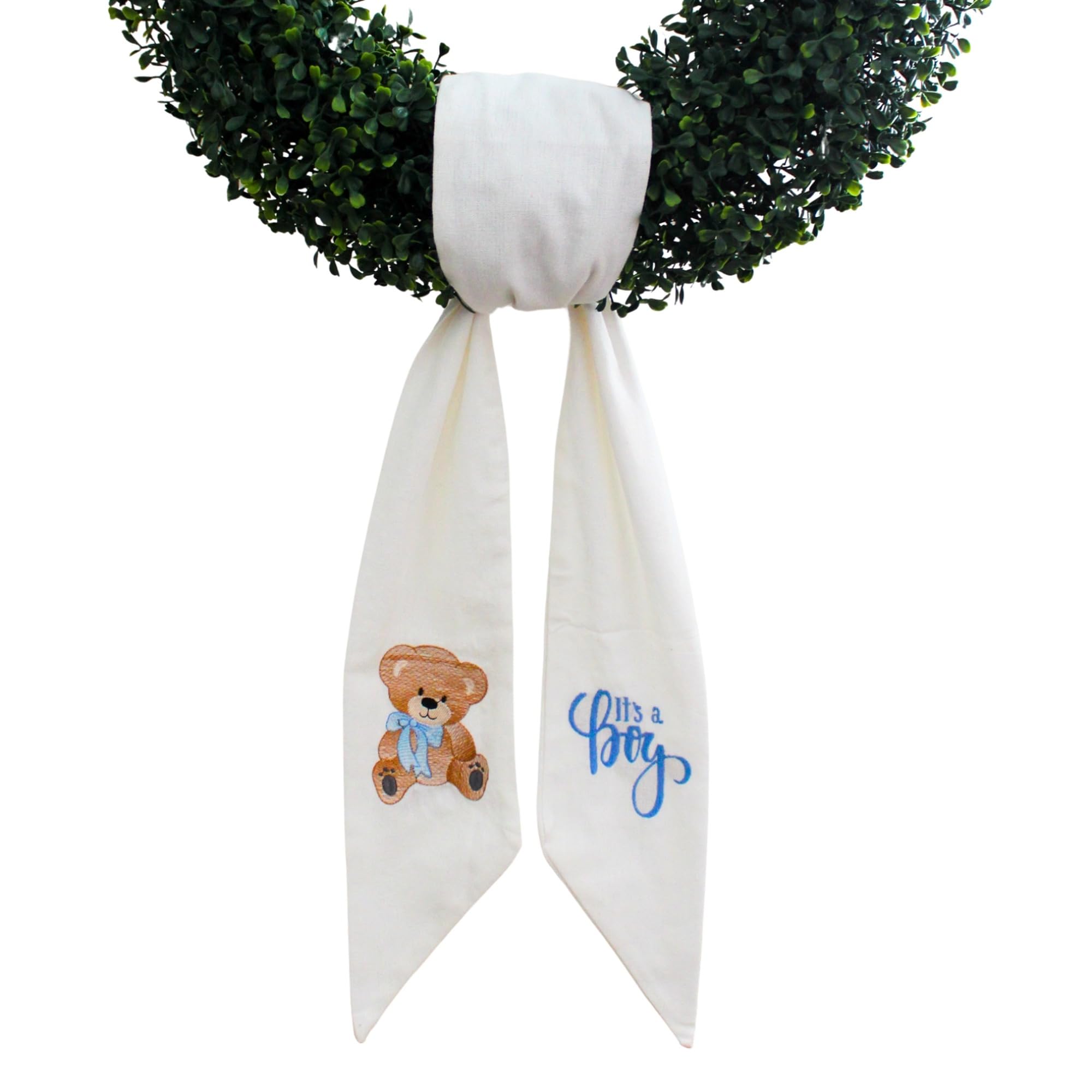 Wreath Sash for Front Door, It's a Boy, Newborn, Monogram and Embroidery, Quality White Linen, Baby Shower, Porch Accessories, and Boxwood Decoration|Home & Garden