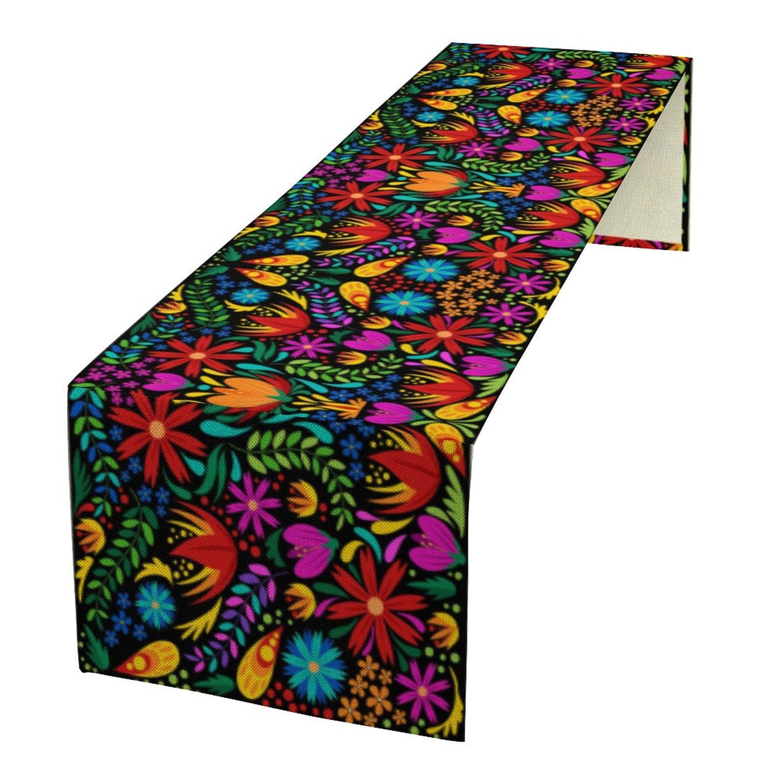 Houselerax Mexican Fiesta Floral Table Runner, Cinco De Mayo Decoration Dia De Los Muertos Fiesta Party Supply Home Kitchen Altar Decor Dining Room|Home & Garden