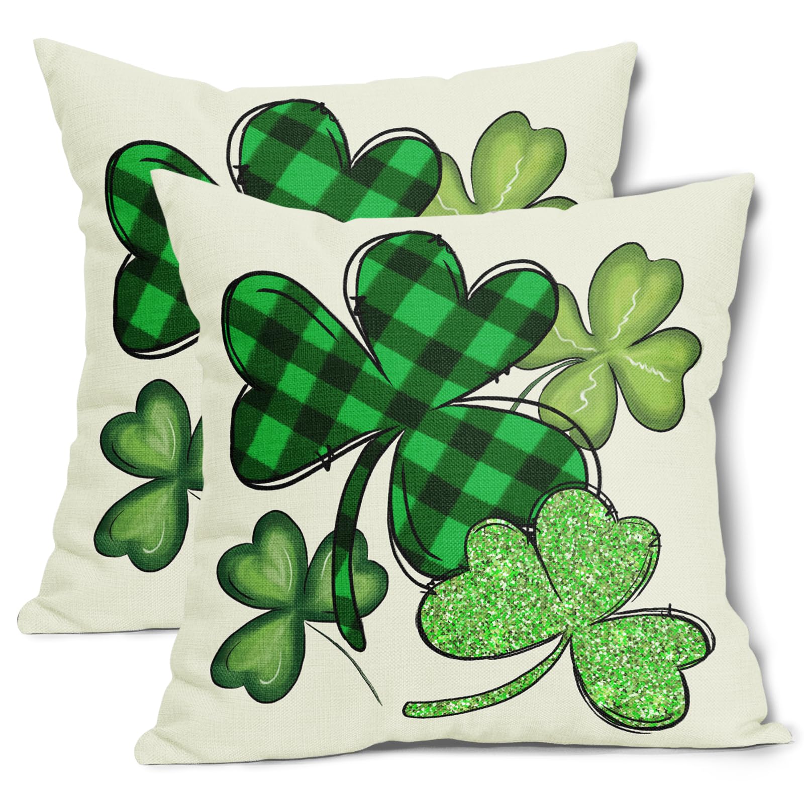 St Patricks Day Clover Pillow Covers 16X16 Inch Green Buffalo Plaid Check Lucky Shamrock Decorative Pillow Cases Spring Holiday Throw Pillows Set of 2|Home & Garden