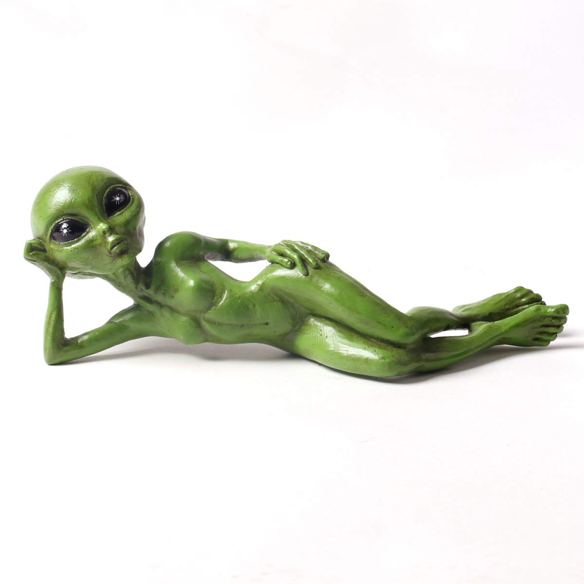 John Bernard & Company Sexy Alien Invasion 10” Lying UFO Extraterrestrial Garden Alien Statue and Figurine Summer - Cosmic Green|Home & Garden