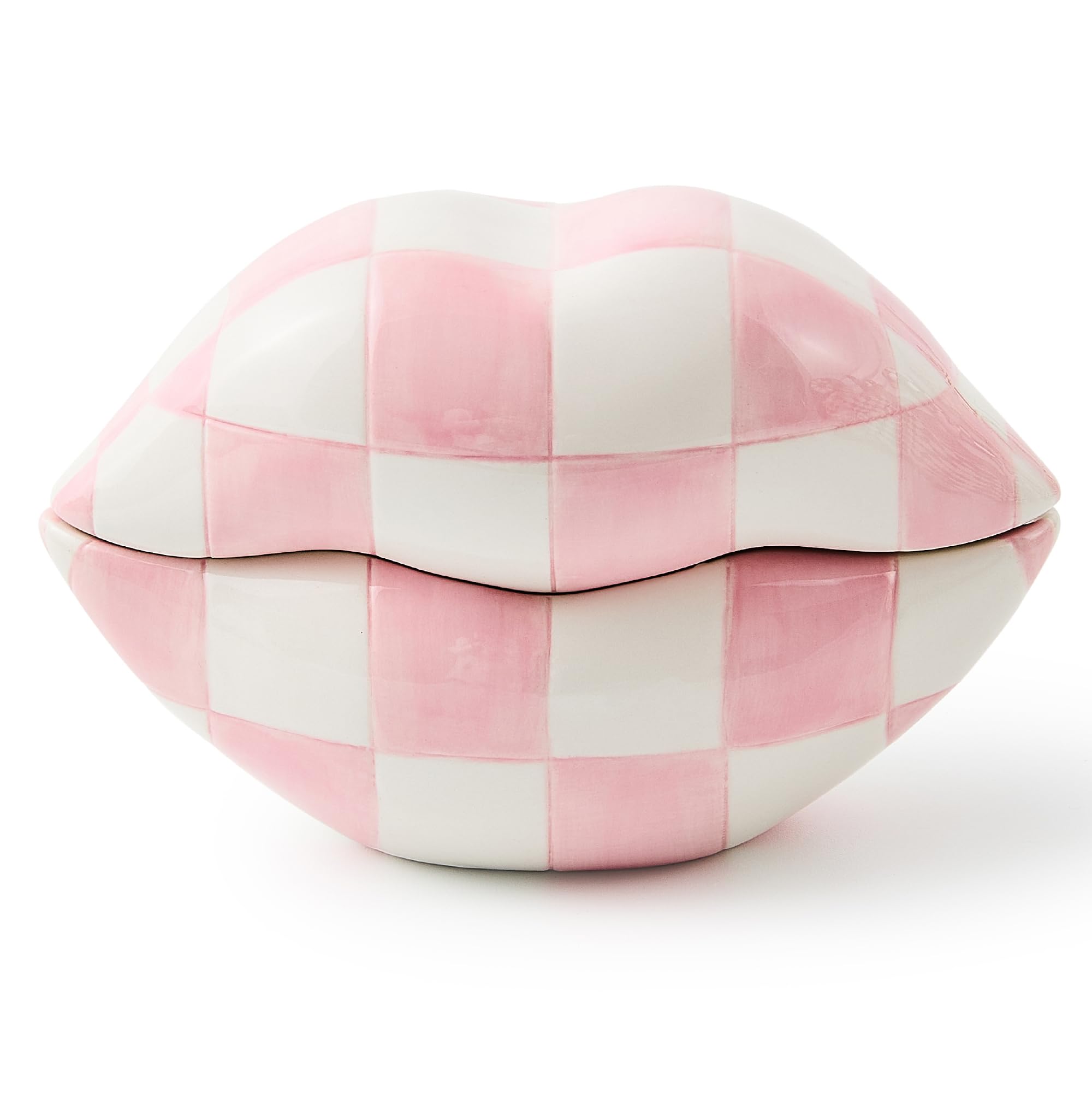 MACKENZIE-CHILDS Ceramic Kiss Me Box, Decorative Storage Box for Home Use, Pink-and-White Rosy Lips|Home & Garden