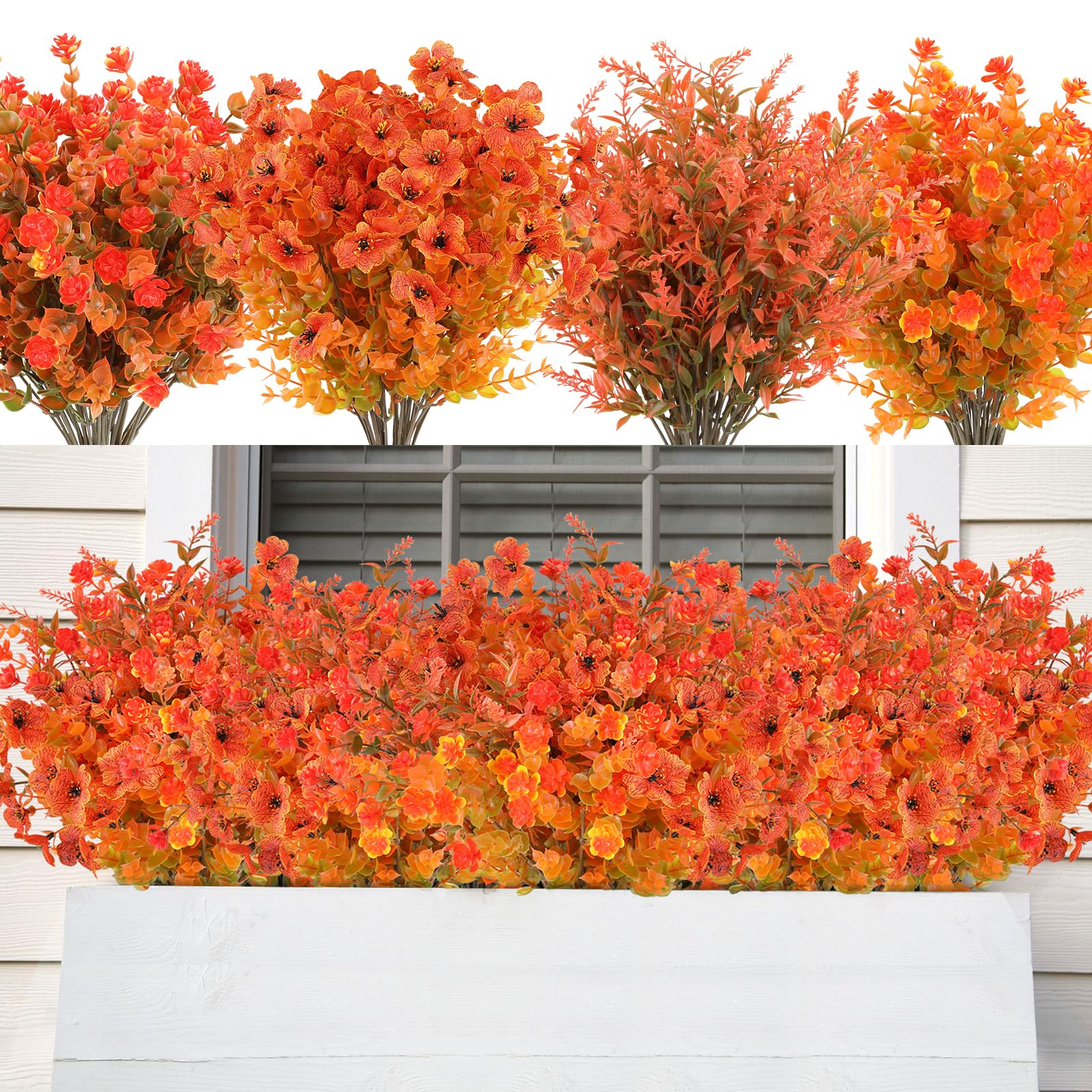 AmyHomie 16 Bundles Mix Orange Artificial Fall Flowers for Outdoor Fall Decor UV Resistant Fake Mums No Fade Fake Plastic Plants Garden Porch Window|Home & Garden