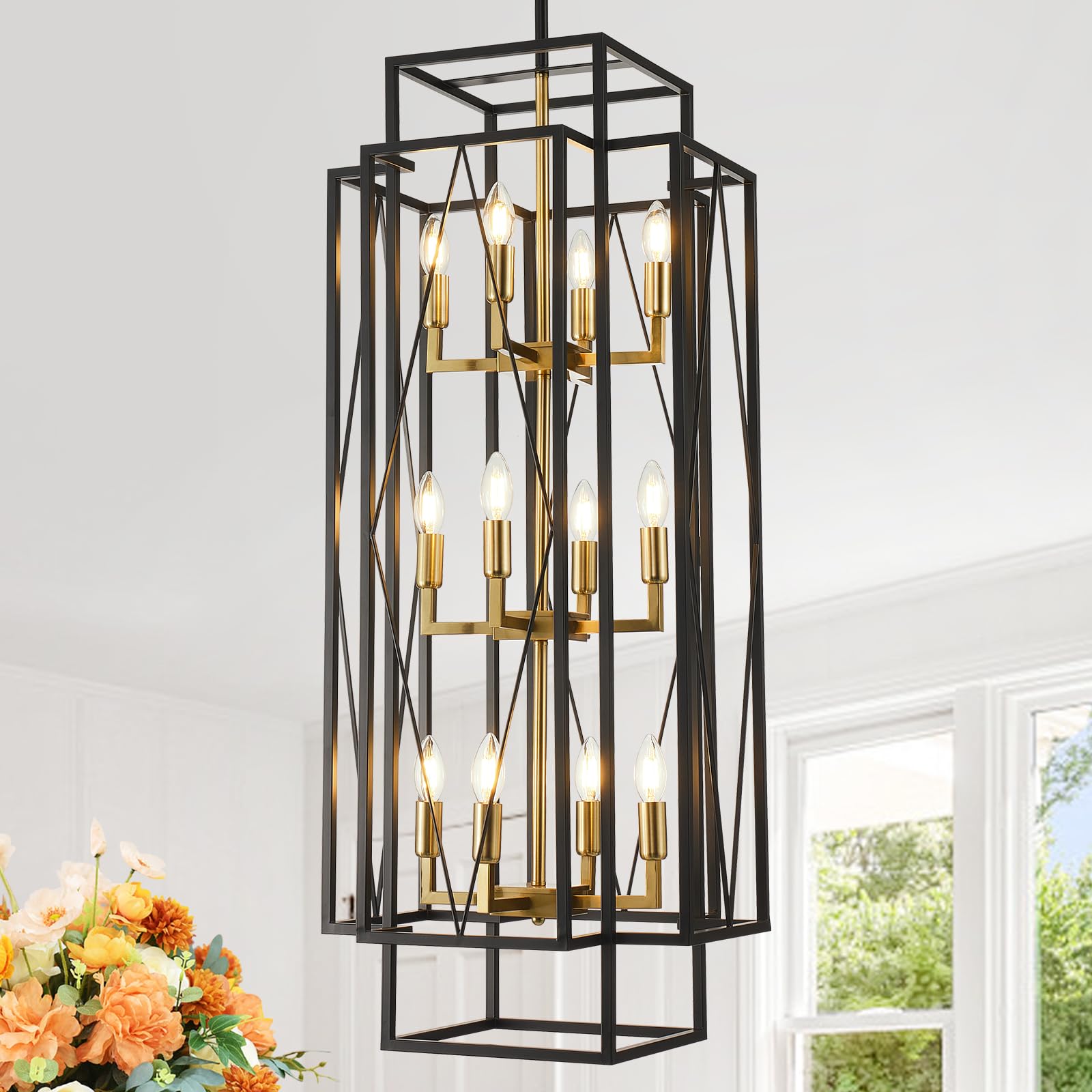 12-Light Lantern Tiered Pendant Light Fixtures, No Assembly Required Farmhouse Chandelier for Entryway, Large Chandeliers for High Ceilings, Modern|Home & Garden