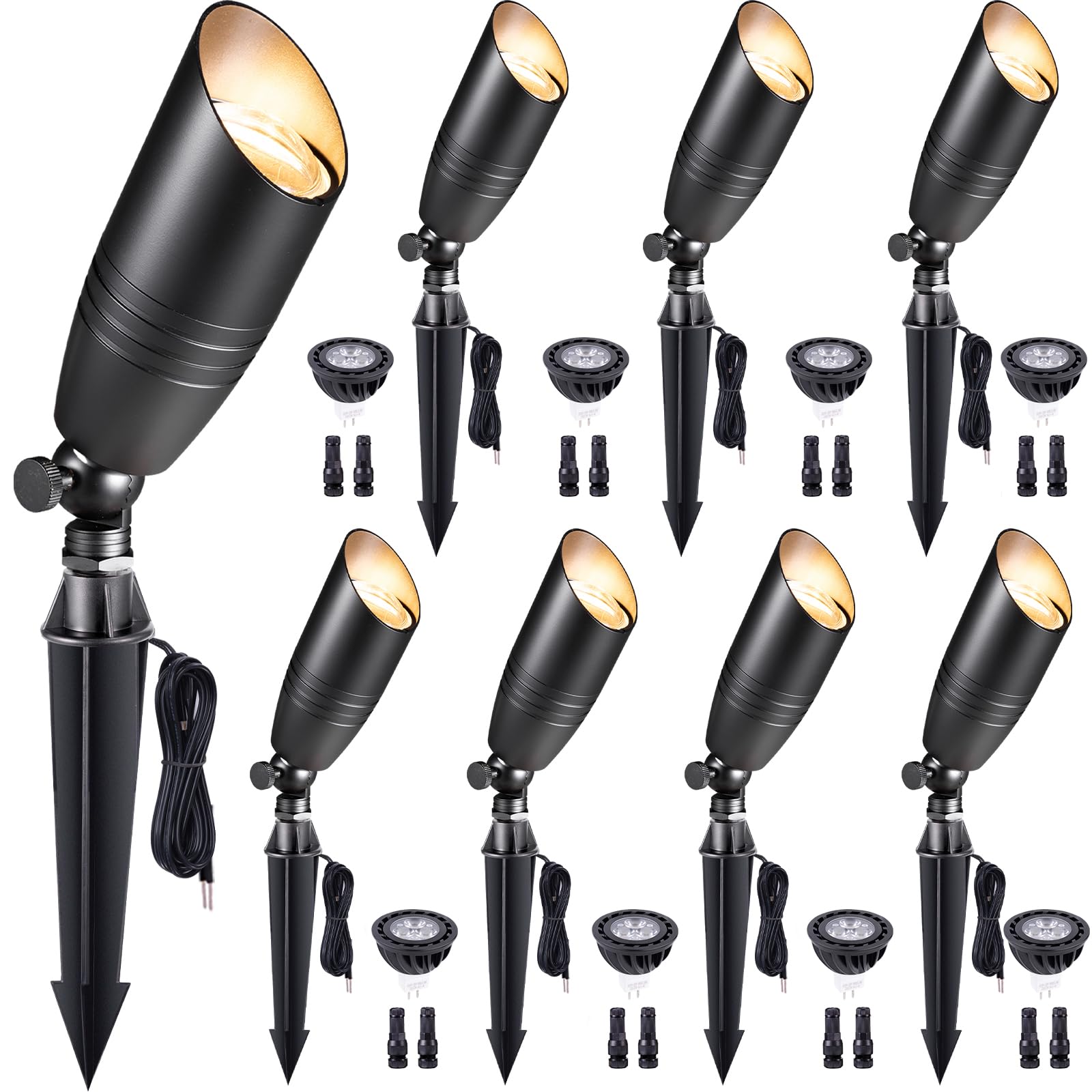 Gardenreet Spot Light Brass - Outdoor Landscape Spotlights LED, 12V Low Voltage Landscaping Uplights, Hard-Wired All Weather Black for Backyard Lawn|Home & Garden