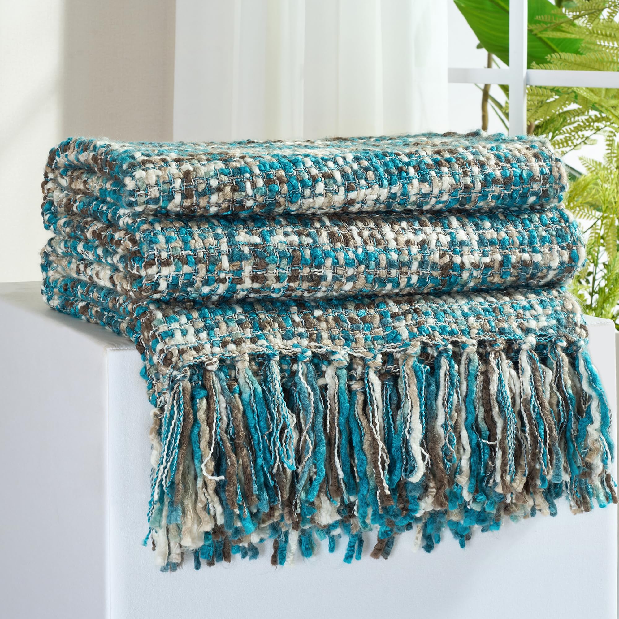 GINAMUSE Multi-Color Teal Cable Knitted Throw Blanket for Couch,60"X80" Boho Style Textured Blankets for Home Decor,Super Soft Warm Cozy Chunky Knit|Home & Garden