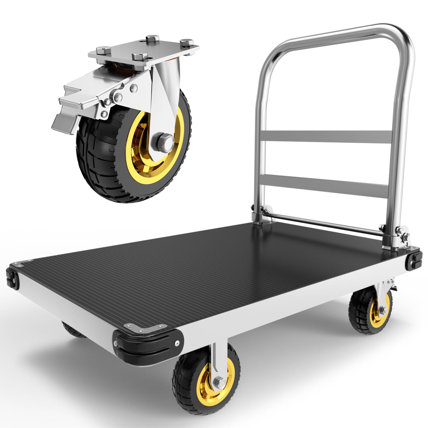 PHEXOD Extra Large Platform Truck Cart, 44 x 28 Heavy Duty Push Cart Dolly 2500 LBS Capacity, Flat Cart with Non-Slip Mat and 6" Swivel Brake Wheels|Home & Garden