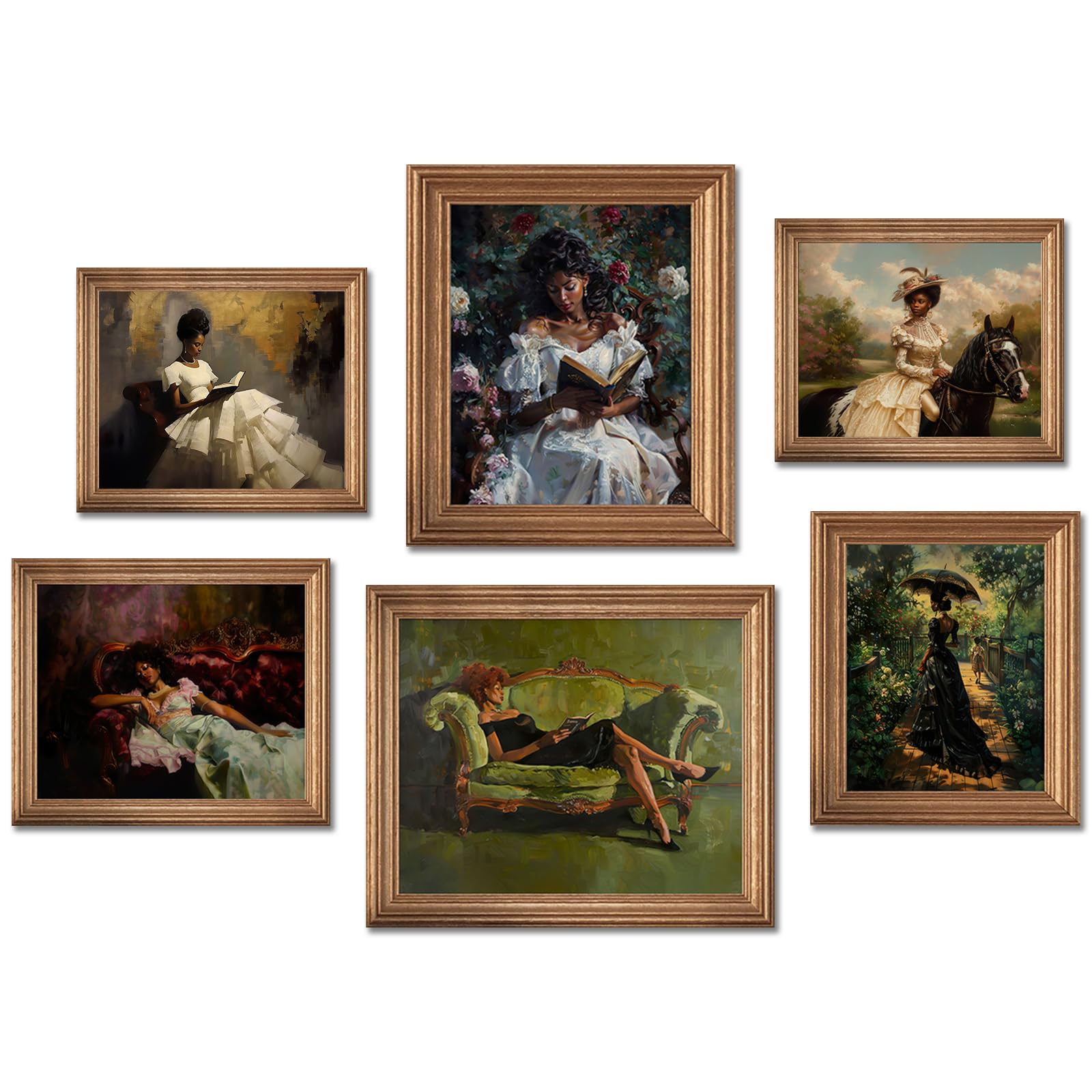 Eclectic Wall Art Decor Black Women Reading Canvas Prints Set Of 6 African American Victorian Wall Art Modern Maximalist Artwork Prints Vintage|Home & Garden
