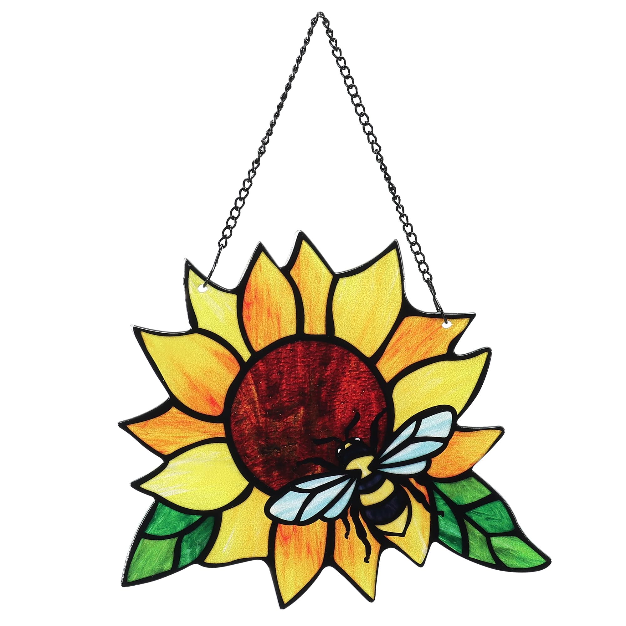 MYCRLIFE Stained Glass Suncatcher, Sunflower and Ladybug Window Hanging, Hand-Painted (Style 3)|Home & Garden