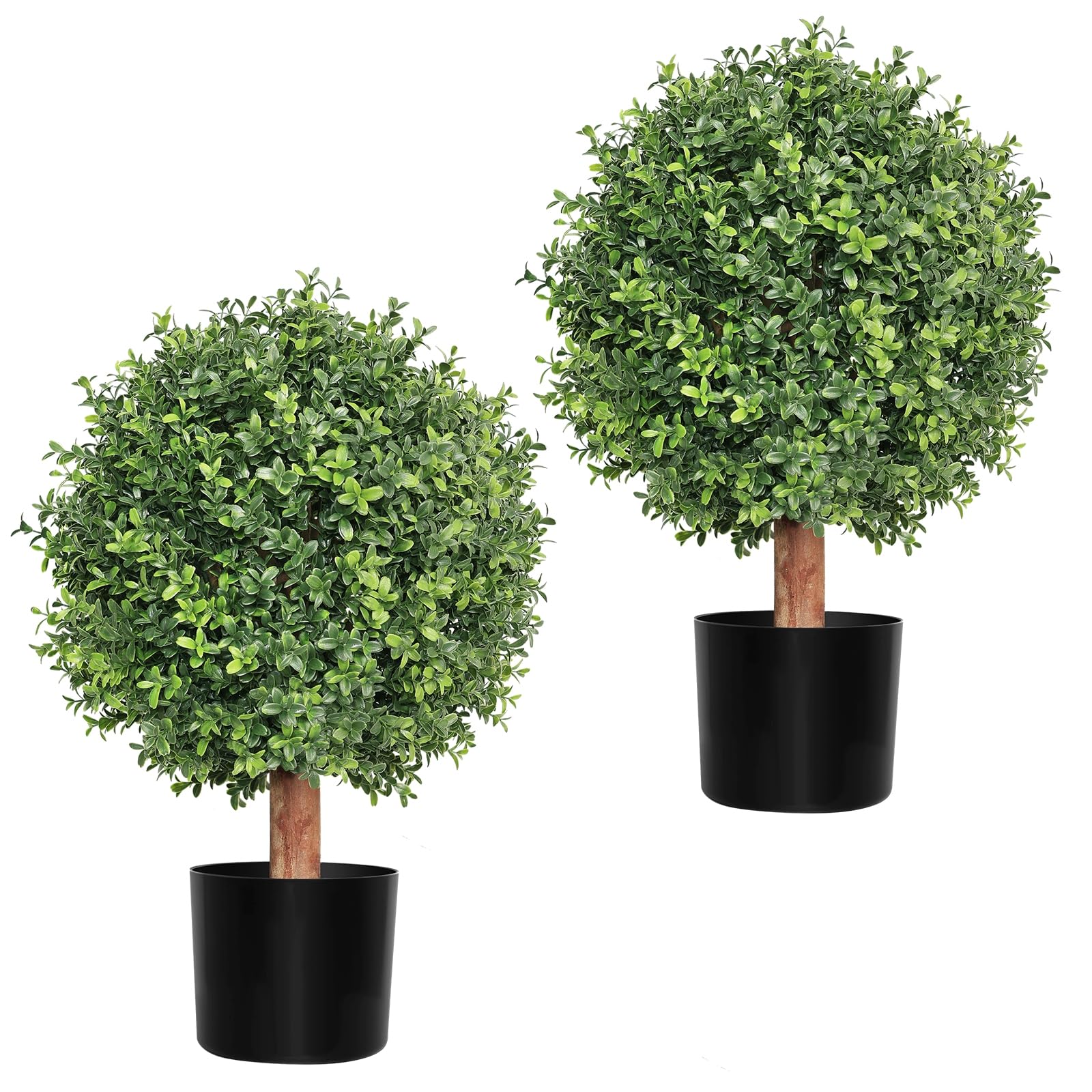 MANASENLUSH 24 Inch Artificial Topiary Boxwood Ball Trees Outdoor – Set of 2 UV Resistant Faux Boxwood Topiary, Fake Potted Shrubs Evergreen for Front|Home & Garden