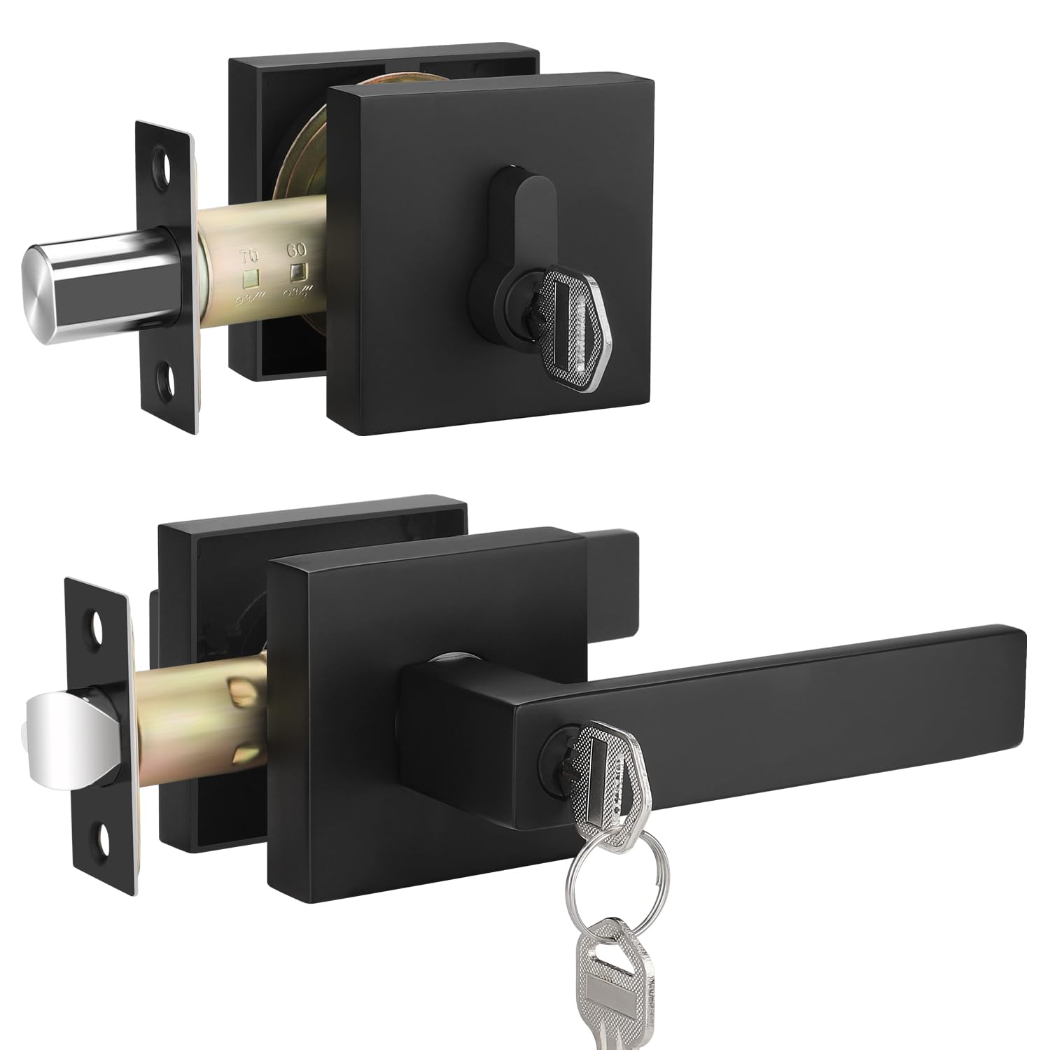 Bonpoly 3 Pack Door Knob and Deadbolt Set, Black Door Handles Interior, Keyed Alike Entry Door Handle, Flat Door Lever with Single Deadbolt,|Home & Garden
