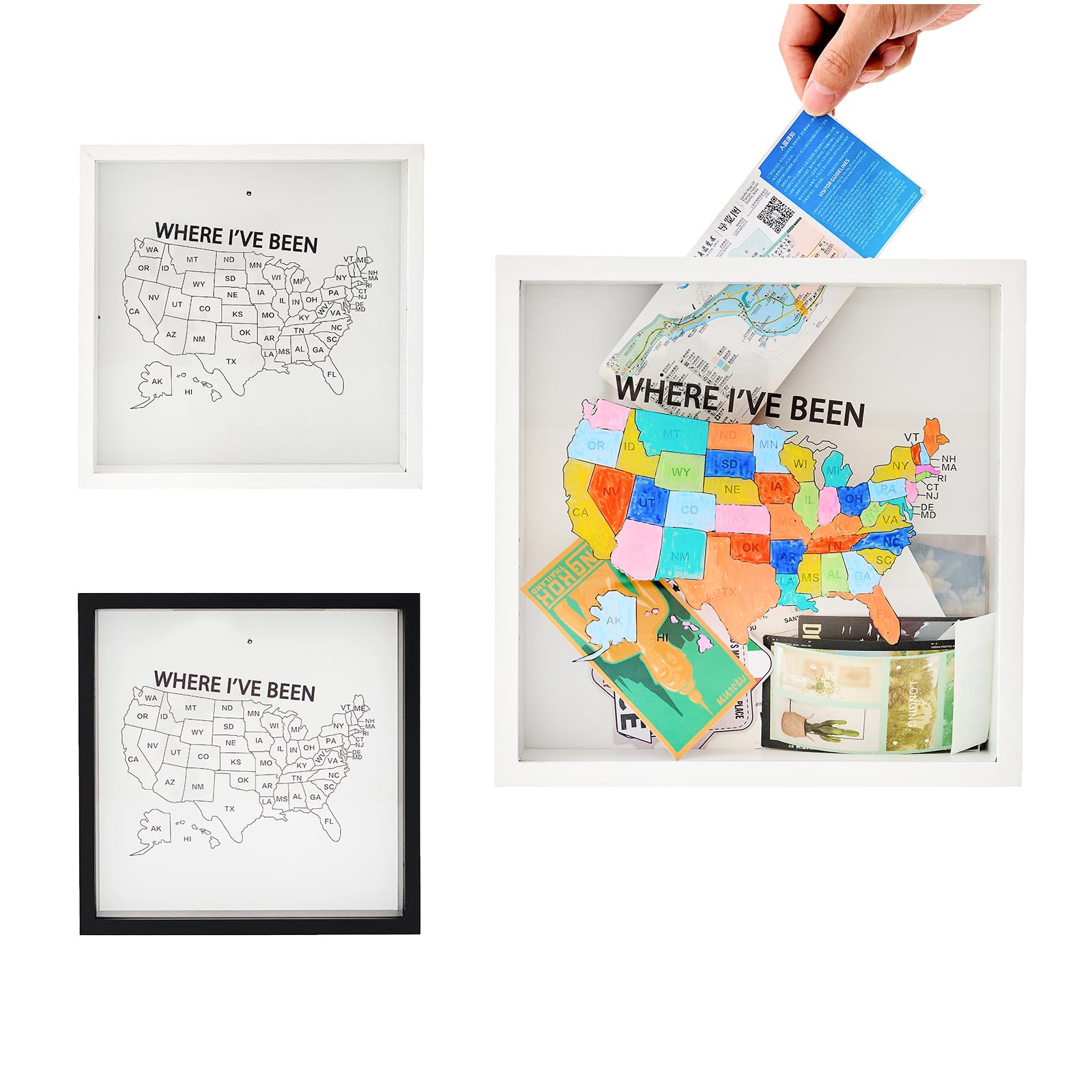Where I've Been US Map Wooden Shadow Box Frame Wall Decoration, Travel Adventure Archive Box Tickets , 50 States Travel USA Map Tracker (White 10.6” x|Home & Garden