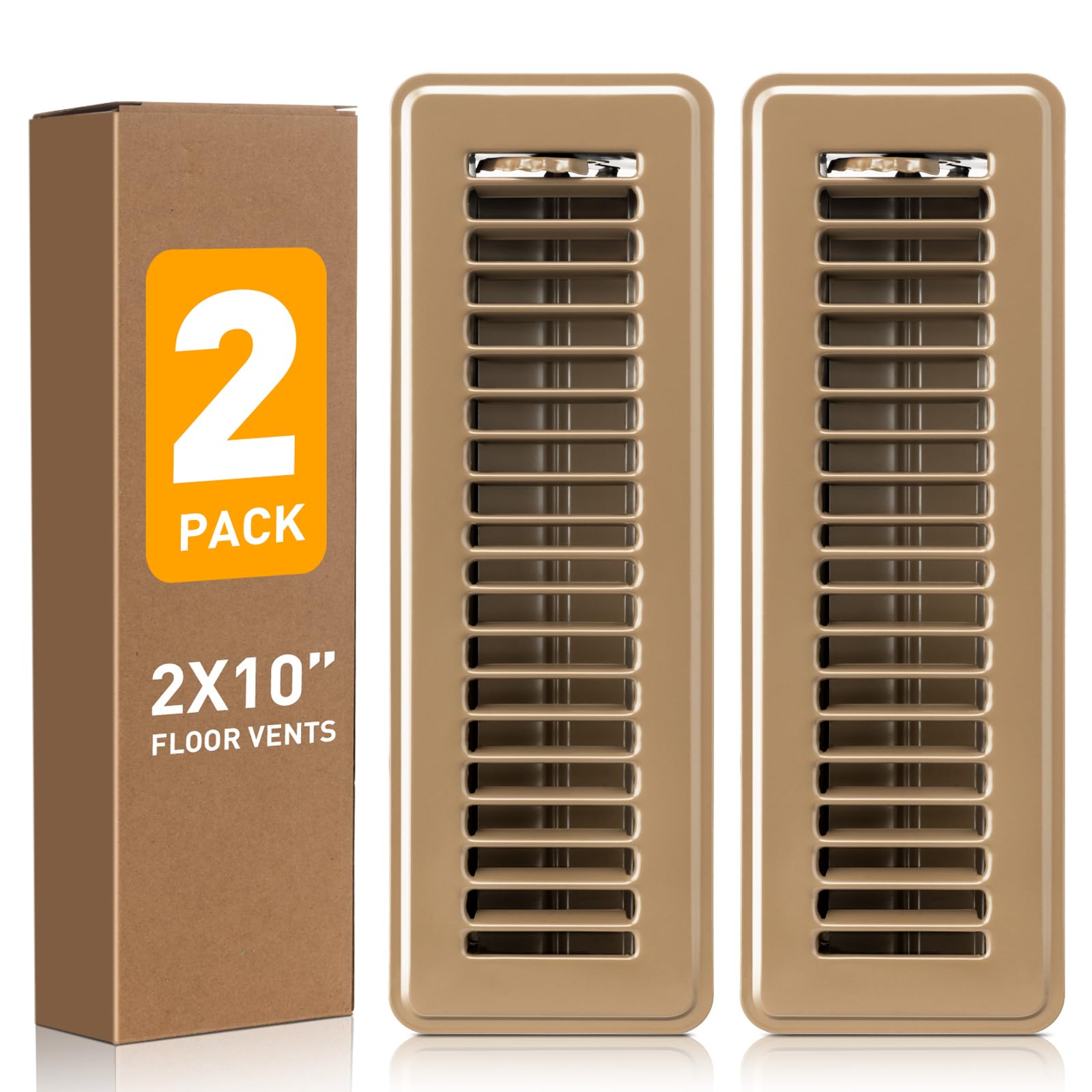 Floor Register 2x10 Inch Brown, Floor Vent Covers for Home Floor, Sidewall, Design with Adjustable Air Supply Lever Floor Vents, 2 Pack|Home & Garden