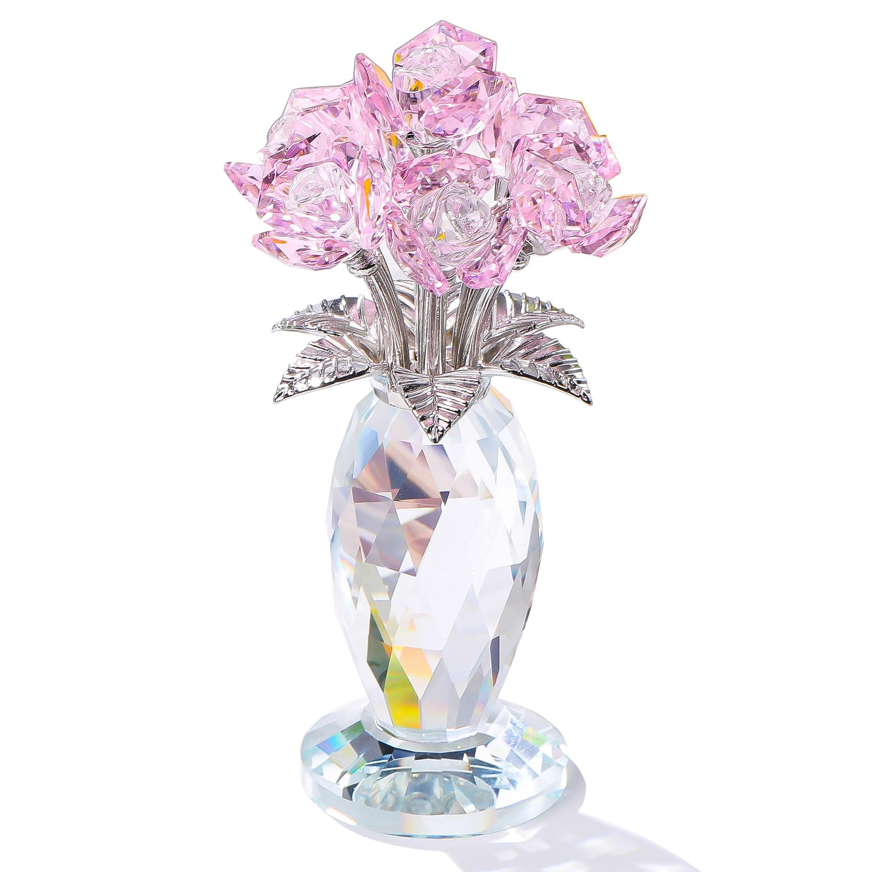 Enjinkail Pink Crystal Flowers Decor with Stems Vase, Glass Rose Flowers Bouquet for Mom Wife Women Home Decor for Christmas Weeding Birthday|Home & Garden