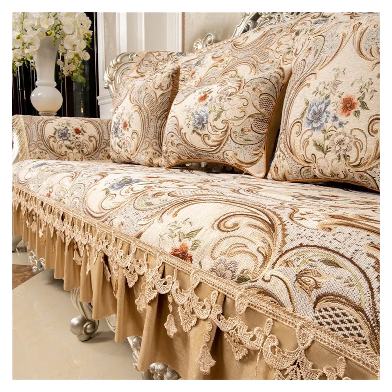 DjxAzthuria Vintage Sofa Cover Retro Lace Cover for Sofa Chenille Jacquard Floral Corner Couch Slipcover Armchair Cushion 1, 2, 3 Seater(Beige-Lace,|Home & Garden