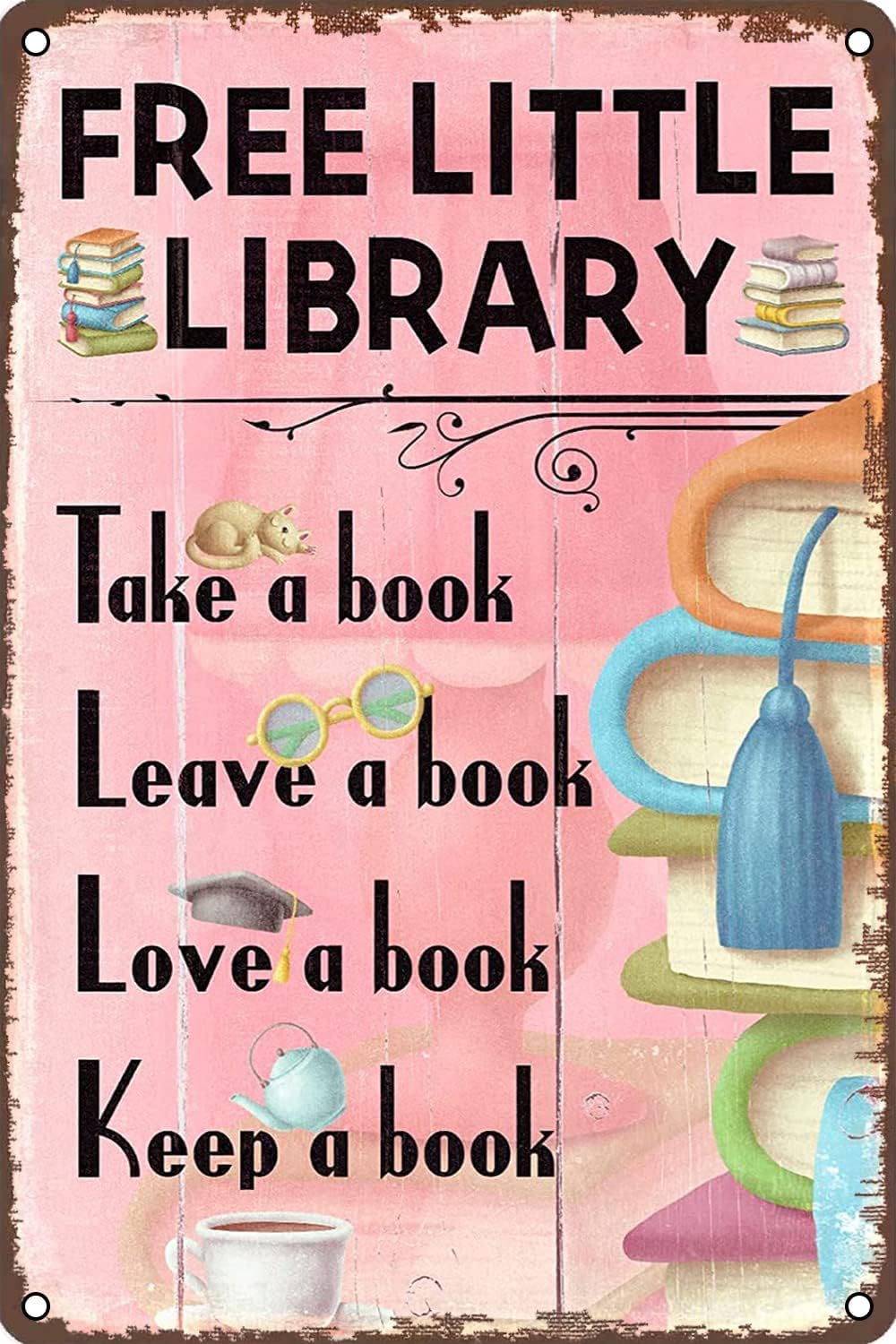 Sarayvhdi Library Sign Free Little Library Metal Sign Reading Room Wall Art Decor for Reading Room Class Decor Sign 8x12 inch|Home & Garden