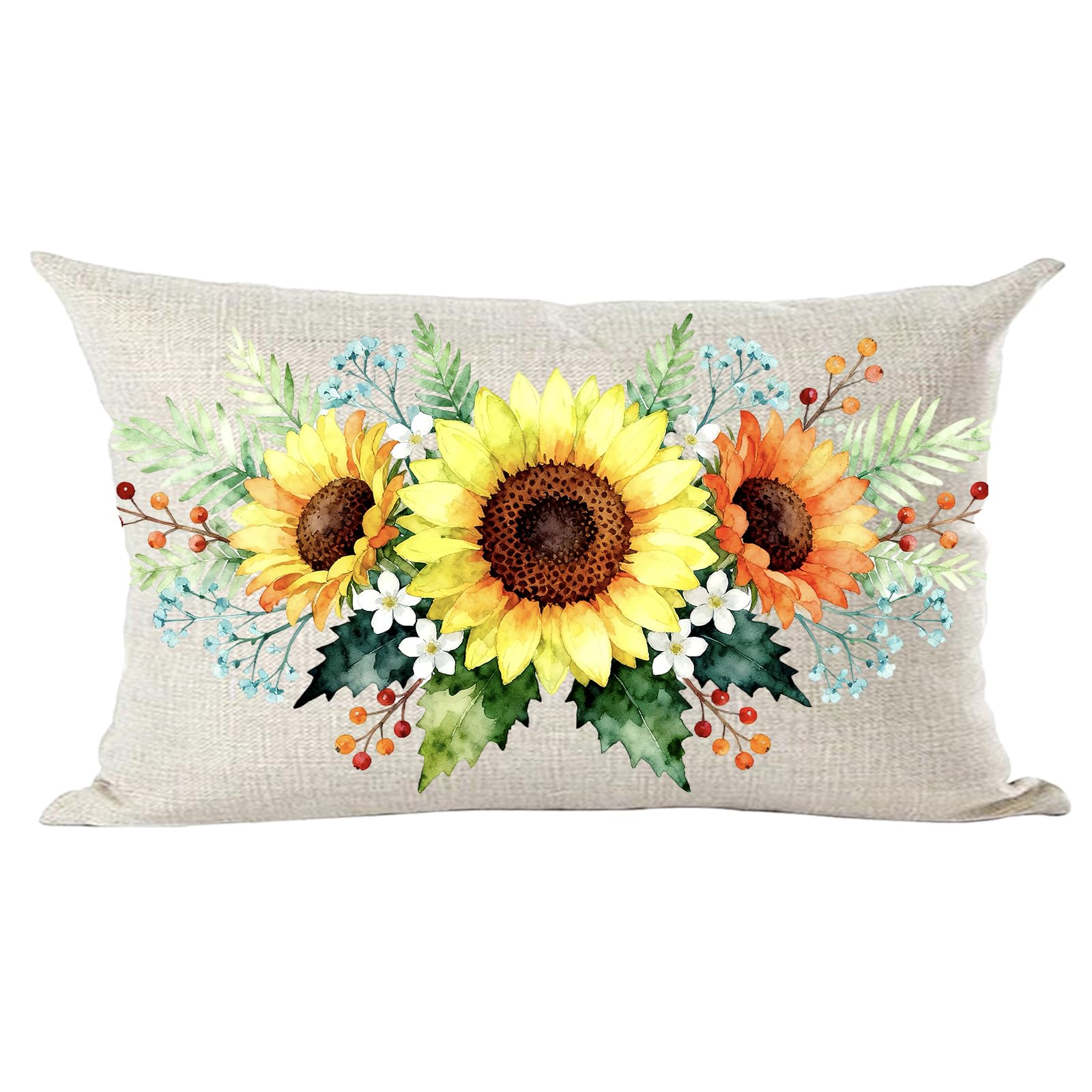 Ramirar Ink Painting Watercolor Yellow Orange Sunflowers Flowers Summer Decorative Lumbar Throw Pillow Cover Case Home Living Room Bed Sofa Car Cotton|Home & Garden