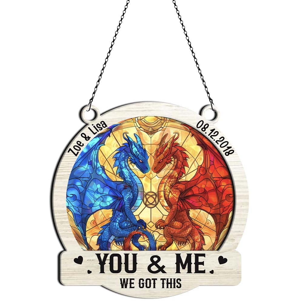 Widoteo Personalized Couple Dragons Ornament, You and Me We Got This Suncatcher, Dragons Ornament for Christmas Tree, Dragon Lovers Gift|Home & Garden
