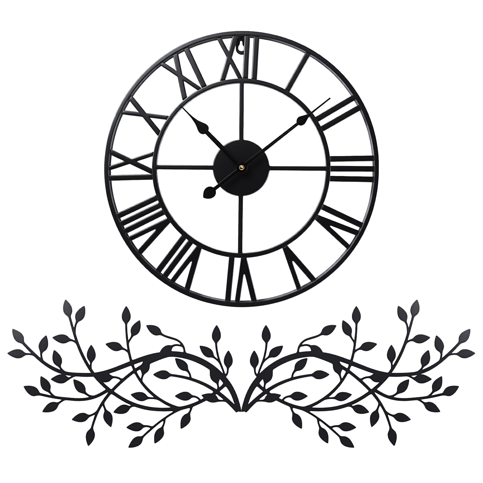 Otoolling 15.7 Inch Metal Wall Clock Metal Tree Leaf Wall Decor Silent Vine Olive Branch Leaf Art Clock for Home Bedroom Living Room Decorations|Home & Garden