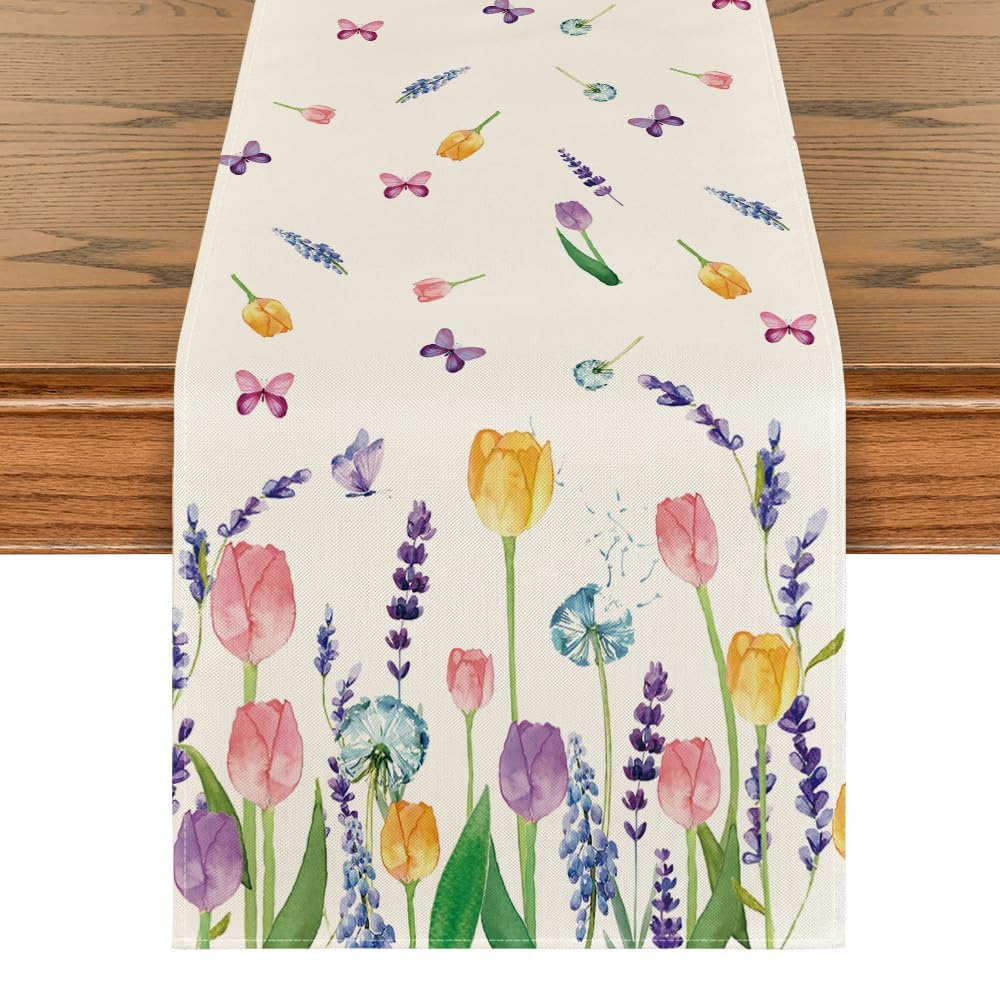Artoid Mode Lavender Tulip Summer Table Runner, Spring Seasonal Anniversary Holiday Kitchen Dining Table Decoration for Indoor Outdoor Home Party|Home & Garden