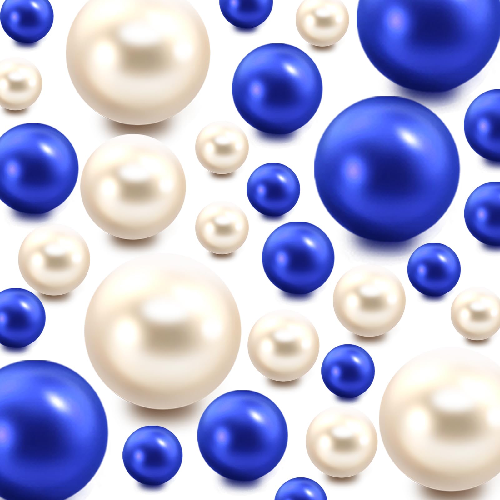 200 Pieces Floating NO Hole Pearls for Vases,White,RoyalBlue Floating Beads for Centerpieces,Floatings Candles,Makeup Brush Beads,Artificial Fake|Home & Garden