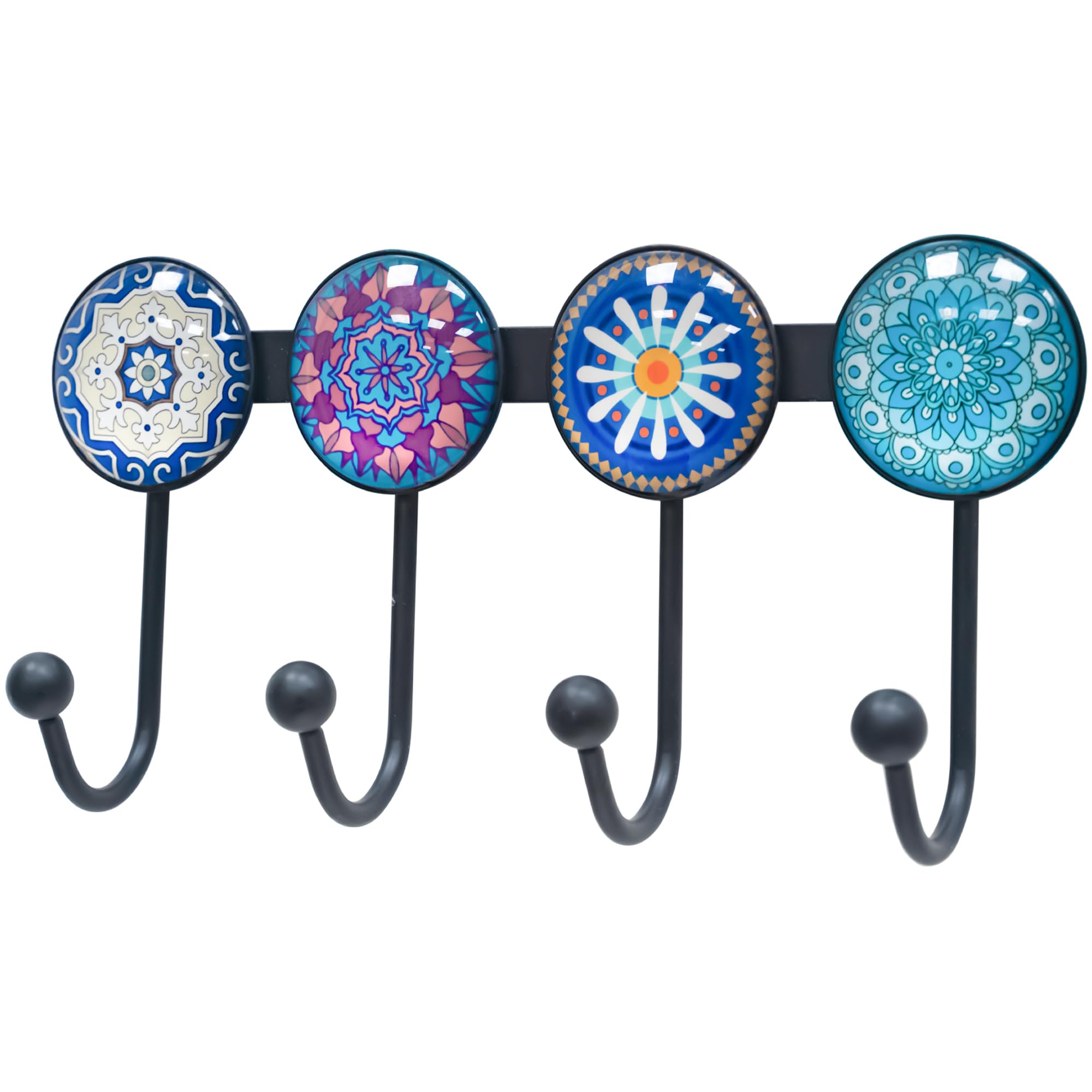 Banllis Coat Rack Wall Mounted with 4 Hooks, Round Blue Pattern Decorative Wall Hooks for Hanging Hat, Key, Towel, Purse, Bag and Robe, for Entryway|Home & Garden