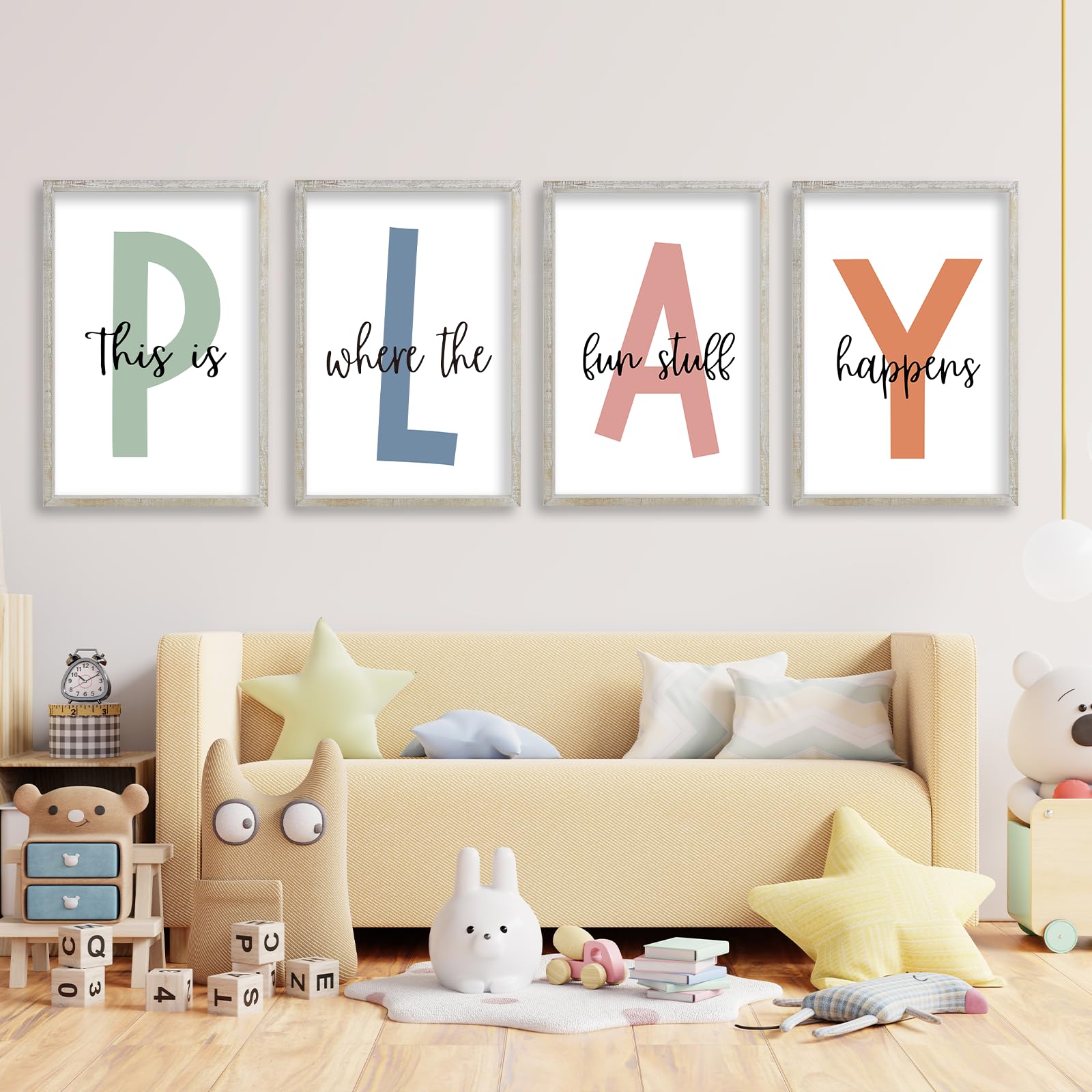 This Is Where The Fun Stuff Happens Kids Playroom Wall Art 11x16 Inch Set Of 4 Rustic Kids Wood Framed Boy Sign Toddler Modren Nursery Interesting|Home & Garden