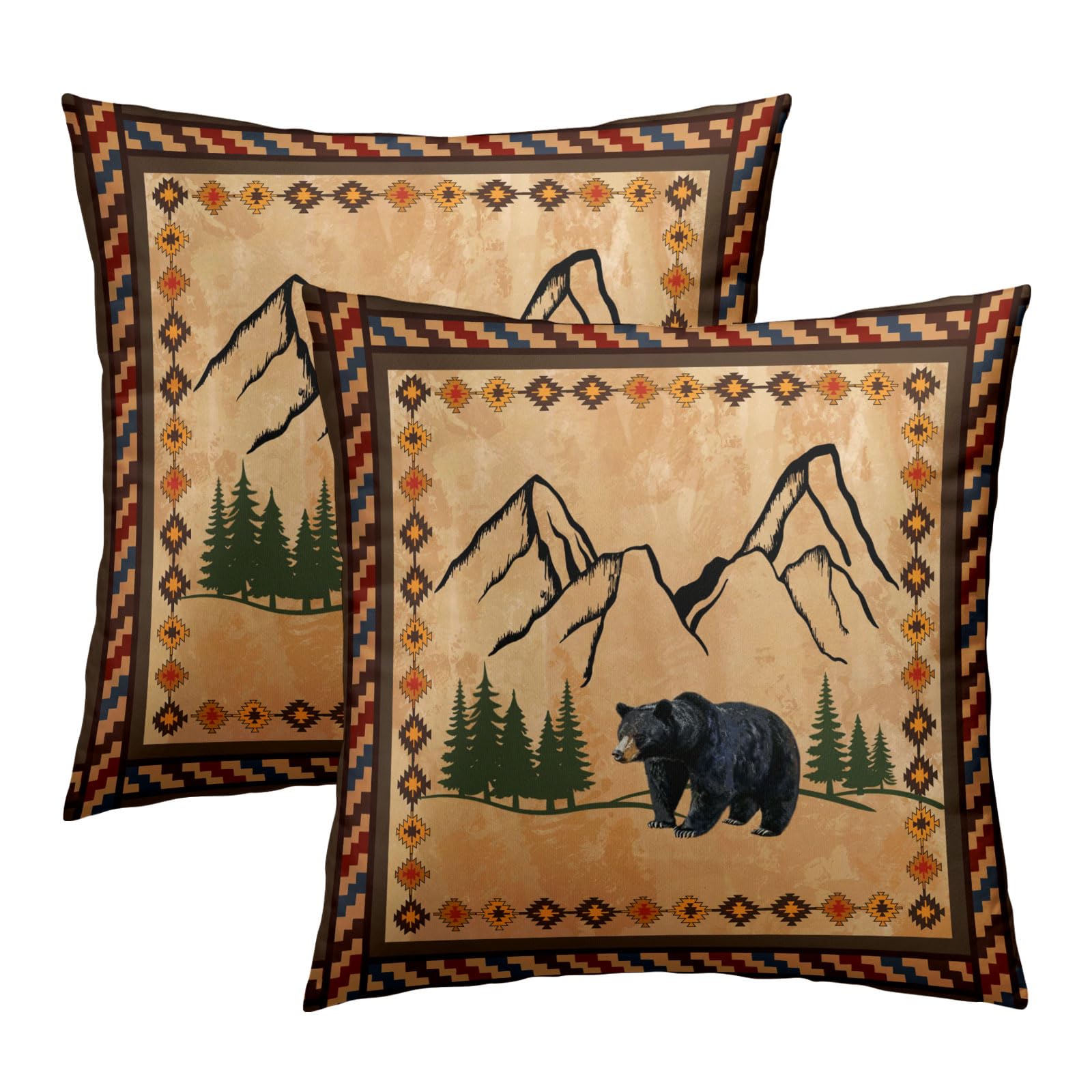 Imiss Bear Brown Throw Pillow Covers 18 x 18 Inch Set of 2 Rustic Cabin Green Forest Mountain Pillow Cover Boho Style Decorative Soft Cotton Cushion|Home & Garden