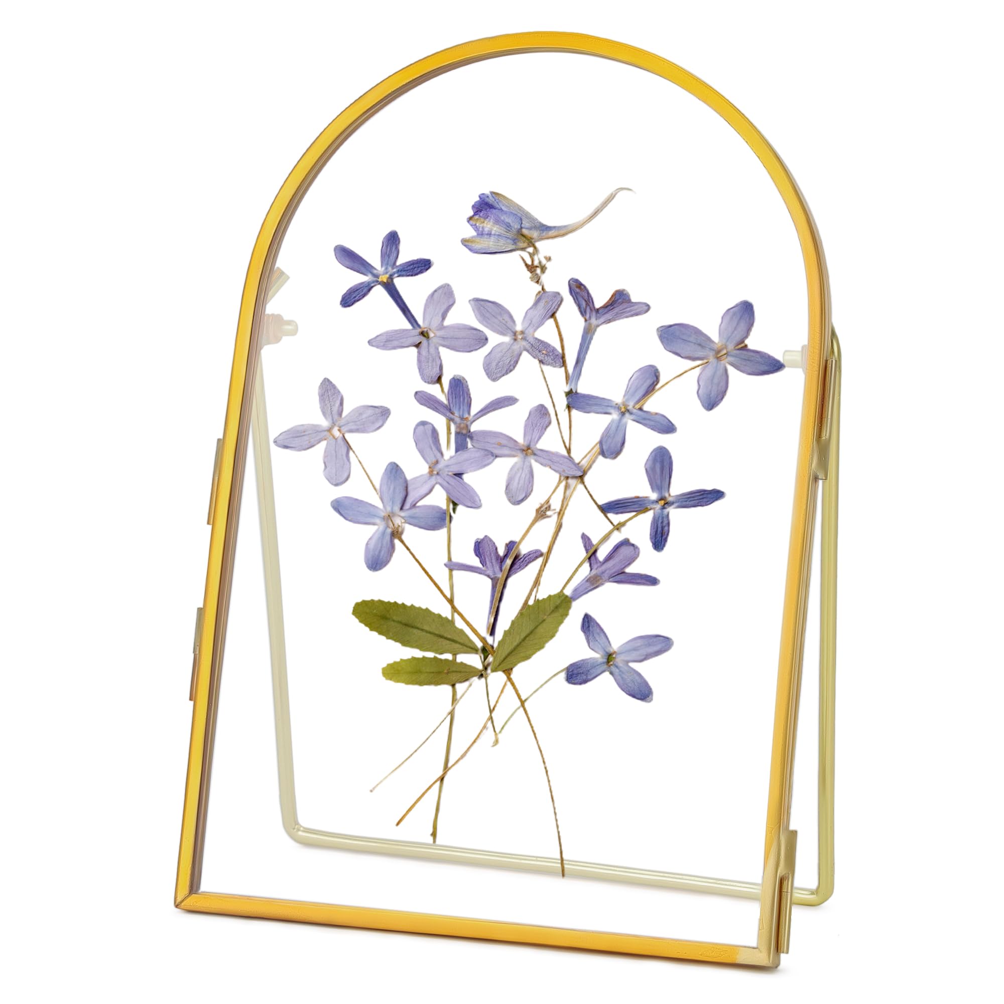 REDHUGO Double Glass Frame for Pressed Flowers Handmade, Metal Floating Picture Frame for Pressed Flower, Tabletop Display, Brass, ArcShaped, Gold,|Home & Garden