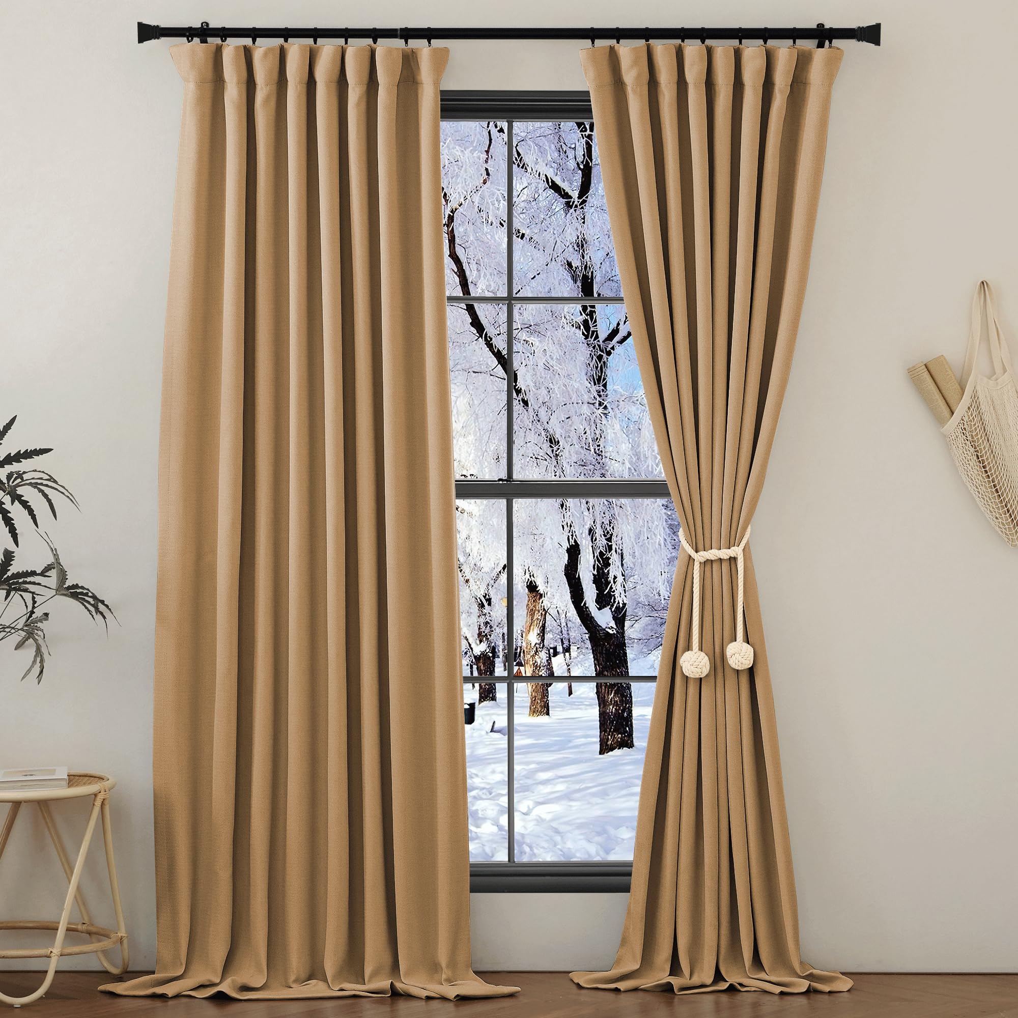 Vision Home Sand Pinch Pleated Full Blackout Curtains Linen Blended Room Darkening Window Curtains 102 inch for Living Room Bedroom Thermal Insulated|Home & Garden