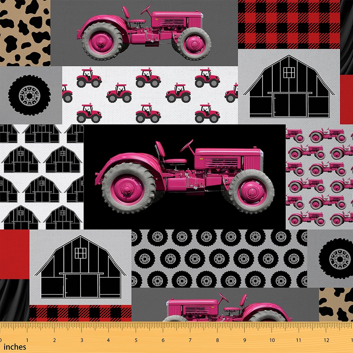 Feelyou Tractor Fabric by The Yard, Cartoon Farm Equipment Trucks Upholstery Fabric for Chairs, Construction Car Farmhouse Theme Plaid Decorative|Home & Garden