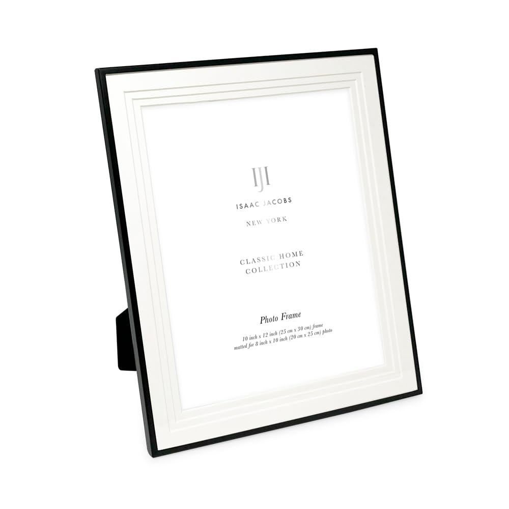 Isaac Jacobs 10x12 (Matted 8x10) Black Metal Picture Frame, Triple Matted Classic Metal Photo Frame Made For Tabletop & Hanging Display, Photo Gallery|Home & Garden