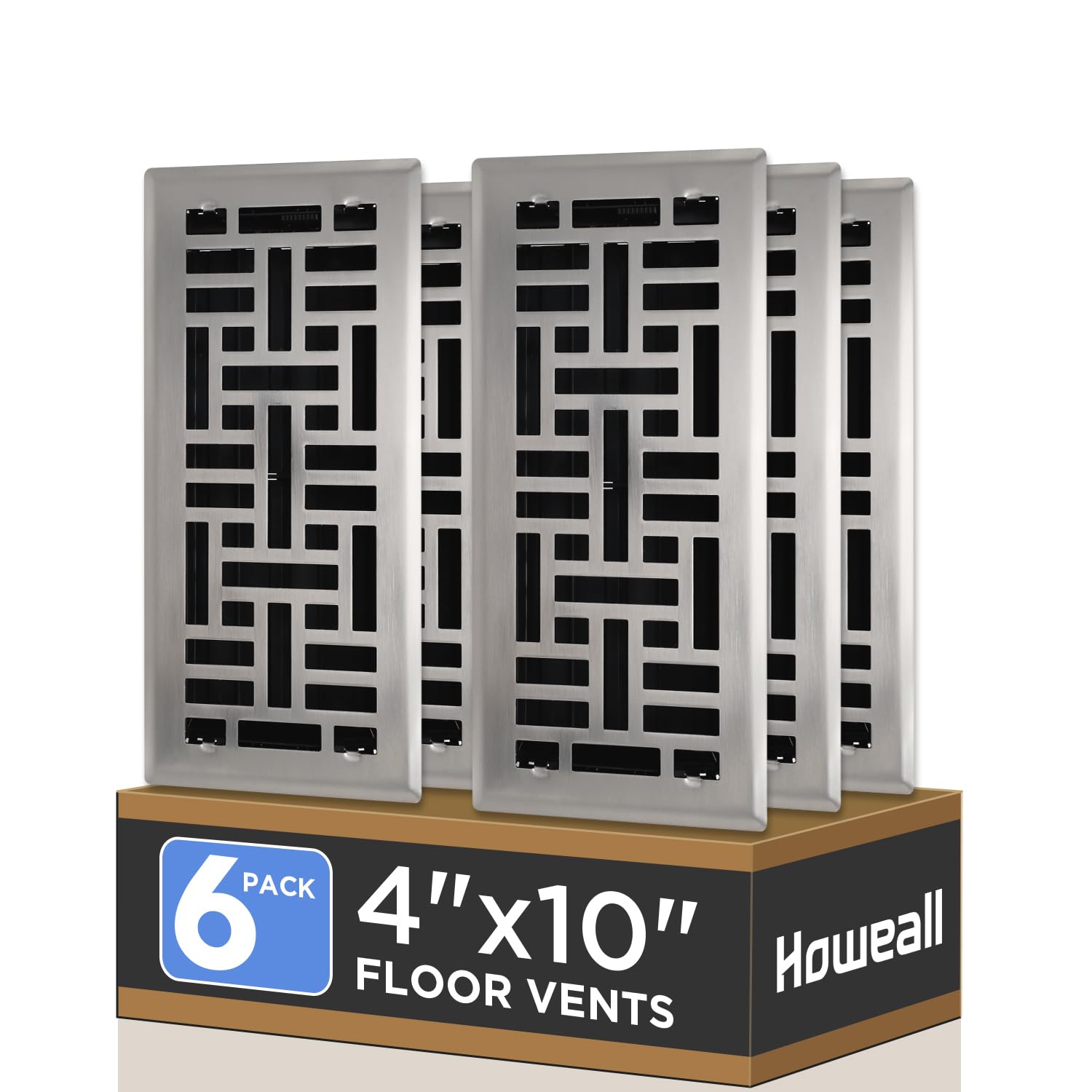 Howeall 4x10 Inches 6 Pack Heavy Duty Walkable Floor Register - Easy Adjust Air Supply Lever Decorative Floor Vent Covers, Seattle Design Vent Covers|Home & Garden