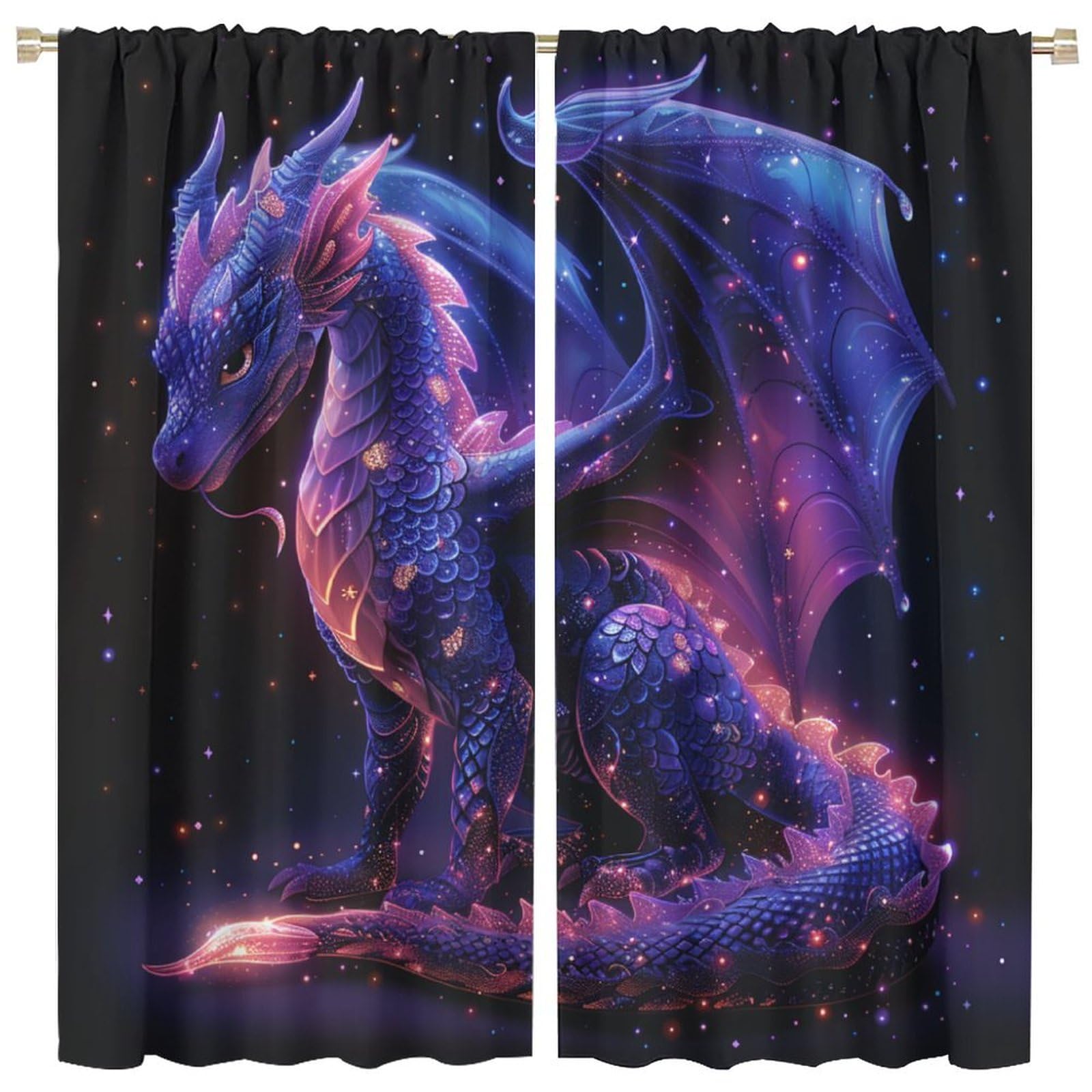 HDESDIS Dragon Purple Blackout Curtains for Bedroom Living Room, Rod Pocket Fantasy Star Galaxy Animal Curtains Thermal Insulated Window Drapes 2|Home & Garden